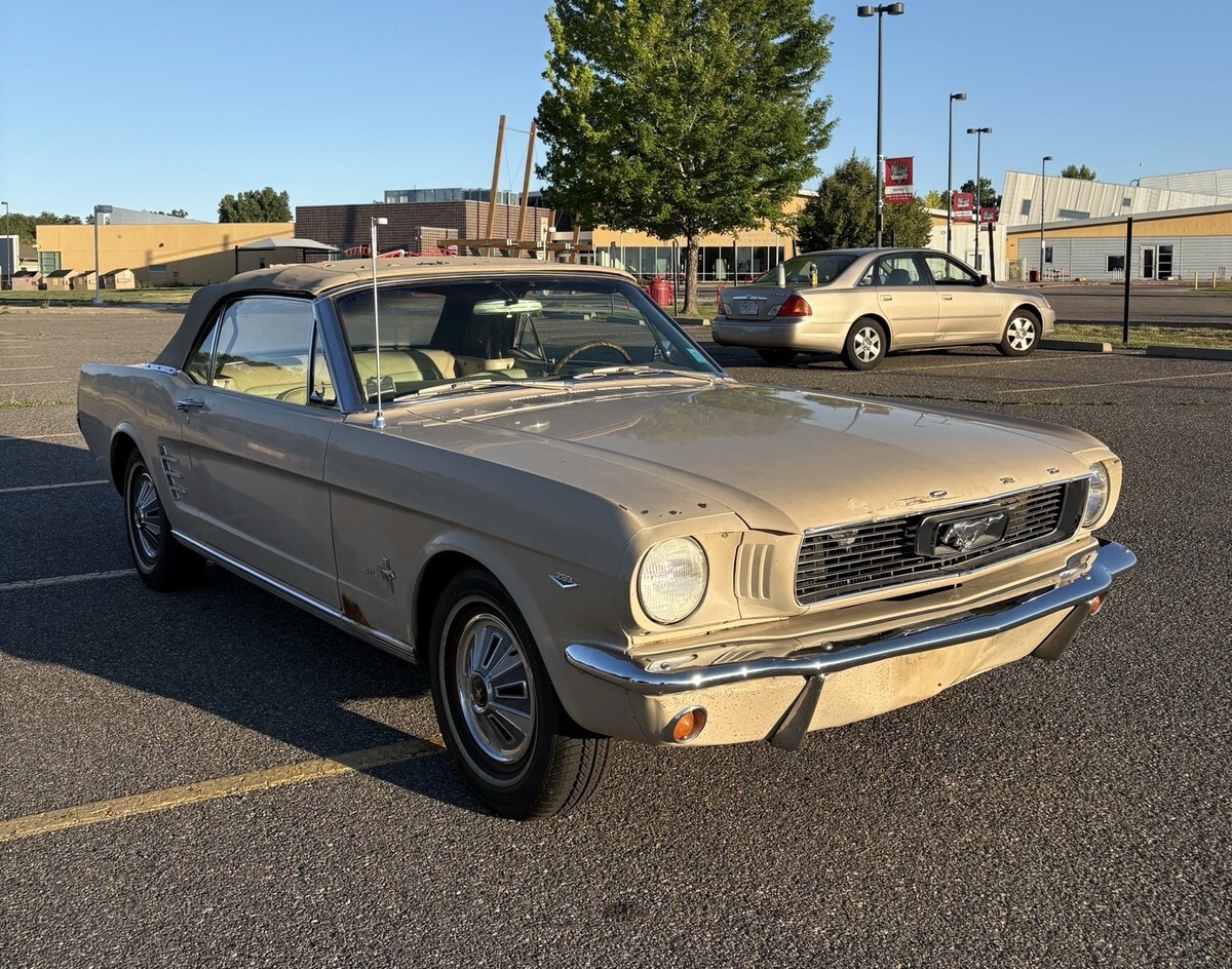 NO TITLE! NO TITLE! NO TITLE! This car was purchased from an estate sale. I have the bill of sale from the estate, the death certificate of the original owner, and the estate paperwork showing that the wife is the personal representative of the estate. SURVIVOR CAR! This 1966 Mustang Convertible is a two-owner C Code car in original unrestored condition. The car was originally equipped with a 289 but was swapped out for a 1971 302 at some point. It still has the original automatic transmission. It has a power top that opens and closes with no issues.The car is Sahara Beige with a Tan top and Parchment interior.
