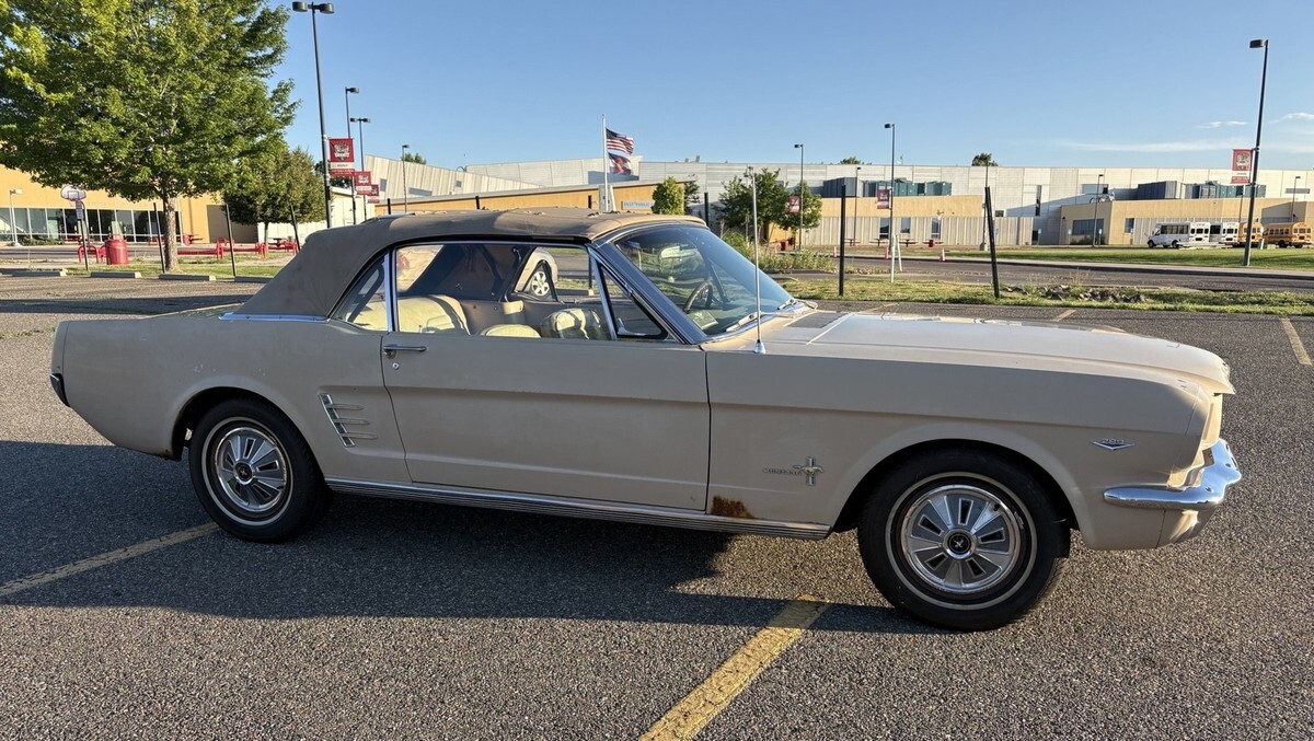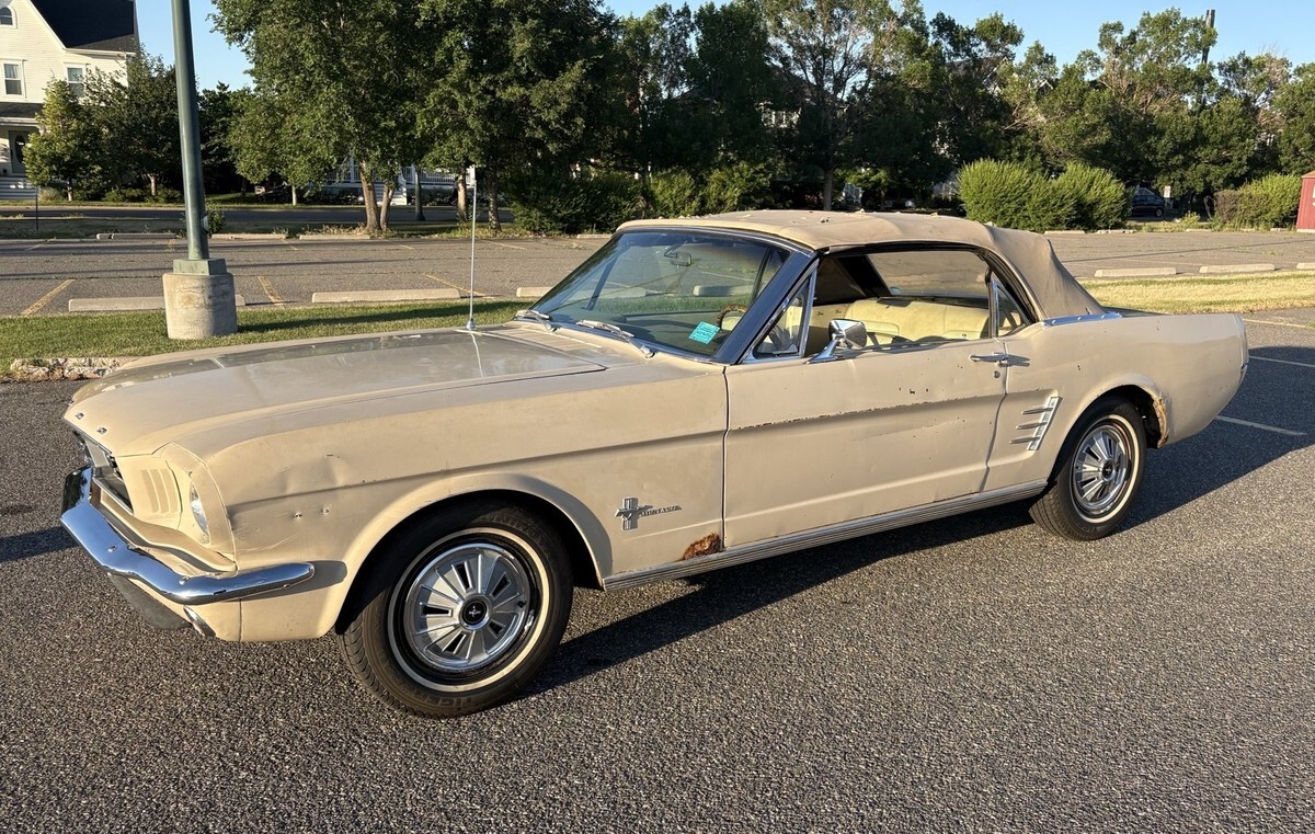 This 1966 Mustang is a great example of an unrestored original car. This car was garaged most of its life and spent the majority of its life in Colorado. Very hard to find Mustangs this solid that do not have new sheet metal. It has a strong running 302 and the transmission shifts smoothly. The brakes work with no issues and the car can be driven as is. Great project to drive as you work on it . Headlights, tail lights, brake lights, reverse lights, etc. are all in working condition. The car would need a new fabric for the roof, but the frame is in great condition.