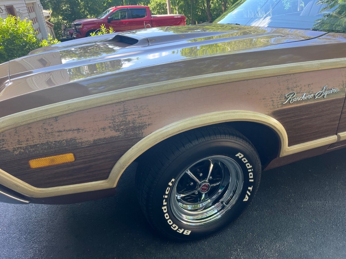 Ranchero Squire, very clean, Would need paint, and vinyl woodgrain replaced to be really nice. I bought it in 21, had it shipped in. Mechanically it is basically done. Tis is a turn key driver, runs and drives very well. Will list all new since I bought it:514" iron head stroker-build sheet in pics, rebuilt C6 w/ 2500 stall convertor. 9" rebuilt, 3.50 gears, trac lock, New when engine installed-all hoses, belts, water pump, fuel pump, Pertronix dist and coil. Hooker coated headers, custom full 2 1/2" exhaust w/ h pipe and 2 chamber mufflers .Performer RPM intake, quick fuel 750 Brawler carb. Champion 3 row alum radiator. Rebuilt alt and P.S. pump. Powermaster starter. New gas tank and sending unitNew Magnum 500 wheels front 15x8 w/ 245/60 BFGs, rear 15x10w/295/50 BfG'sAll brakes new-master cyl, booster, calipers, rotors, all brake hoses, shoes and hardwareClassic Sounds bluetooth/ car play radio. Cluster gone through, new circuit board and bulbs. Winters shifter. Driver's seat has a seam that needs repair, and a carpet kit was poorly fitted years ago, otherwise interior is nice-dash and door panels in great shape.Bed was Spray tech lined, fuel cap is in rear corner of bed. New/ Re Chromed rear bumperI have all a/c parts, I took off to install the new engine.I will include folder full of receipts, manuals etc w/ purchase, also some spare partsIf you want to talk about it-message me your name and #. $300 deposit due at purchase, balance cash on pickup, or wire transfer.I have clean Illinois title in my name, located in Fox Lake, Il 60020. I can assist YOUR shipper at my end in picking it up.