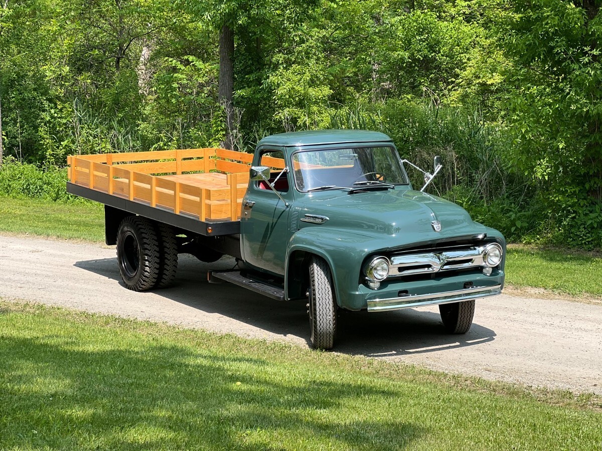 For sale is a 1953 Ford f-600 stake truck that is partially restored. All of the work in the description will need to be done before it is complete. The truck has a 215 cu in straight 6 engine and a five-speed manual transmission, which have both been rebuilt by a reputable rebuilder. The truck also has newer wheels and 8.25 -20 tires with a date code of 2016. Many other new parts were installed. The vehicle is in running condition but should not be driven and will need to be transported on a trailer. It has a clear title with the state of Michigan. The truck is being sold as-is. We are not responsible for new parts that are not operating