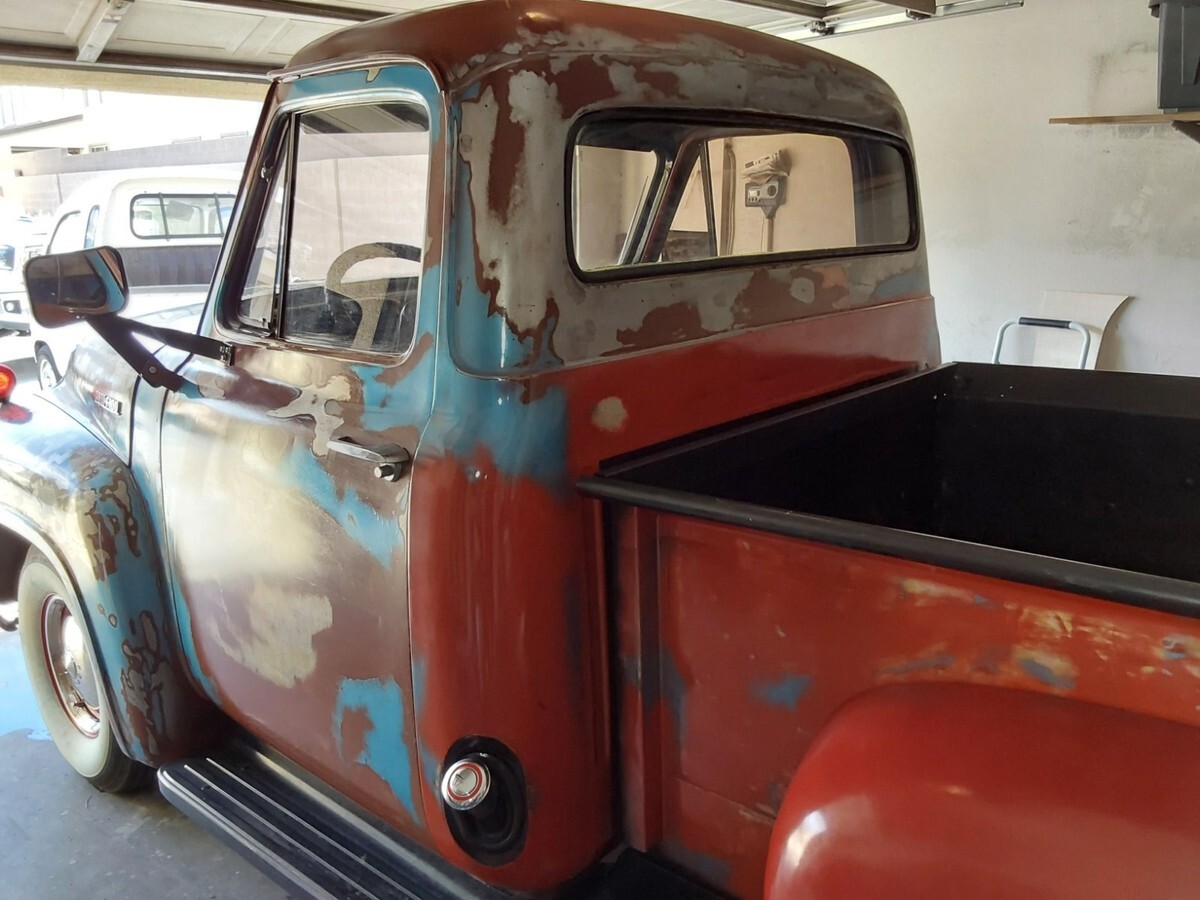 The 1954 Ford F-100 is a classic pickup truck with a stylish multicolor exterior and a unique blue interior. This manual transmission vehicle features a 6-cylinder engine, making it a reliable choice for those looking for a vintage ride. With only 12,016 miles on the odometer, this F-100 is a great find for collectors and enthusiasts alike. Made in the United States by Ford, this iconic truck embodies the rugged and dependable spirit of classic cars.