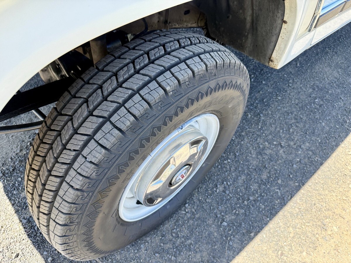 White-finished 16″ steel wheels wearing polished covers are wrapped in Sailun tires. The truck is equipped with power steering, and braking is handled by front discs and rear drums.