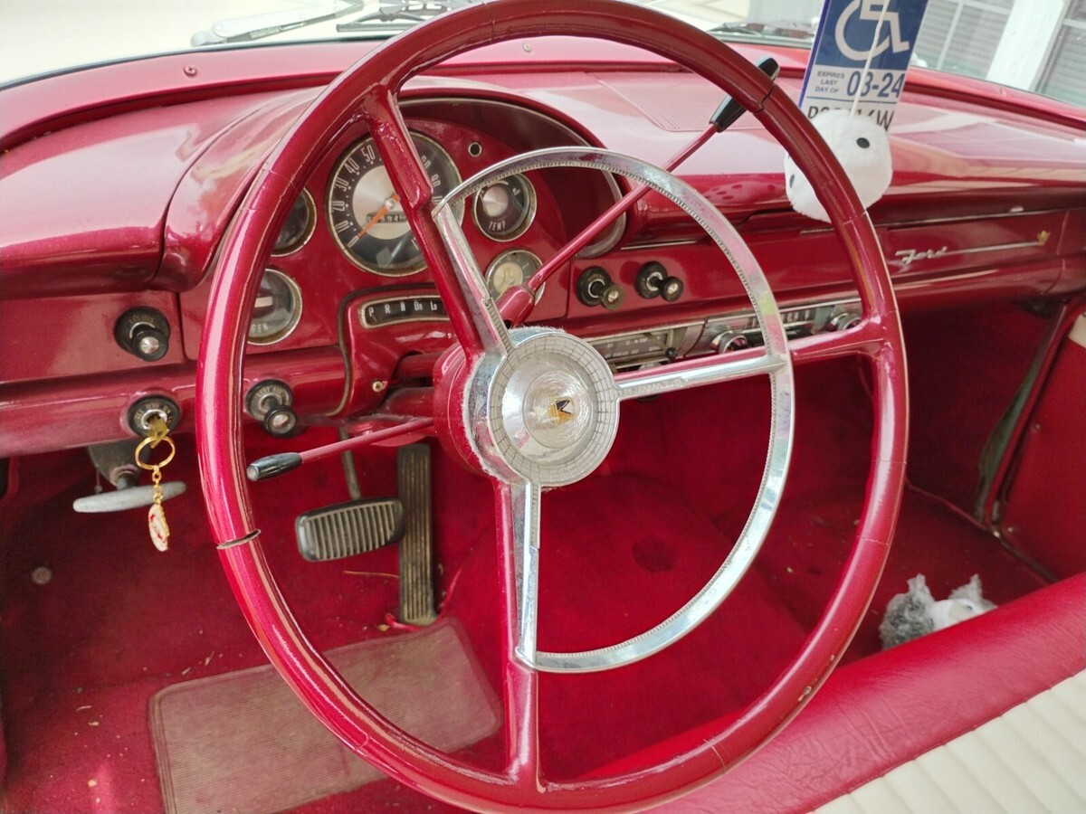 1956 Ford Victoria 2 dr hardtop, t bird motor, automatic, nosed and decked with real pinstripes, full skirts and lake pipes, nice interior and headliner, dual antennas, dual spotlights, dual exhaust, new bumpers, new 4 barrel carburetor, all trim is in nice shape, new fuel pump, new alternator., priced to sell, $13500,00 thanks for looking and I'm sorry that I have to keep relisting it but these people keep on bidding and then disappear but we'll try once more and the car is also for sale locally so the bidding will end early if it sells, thanks again