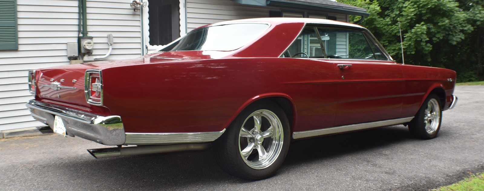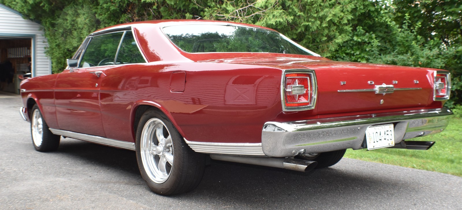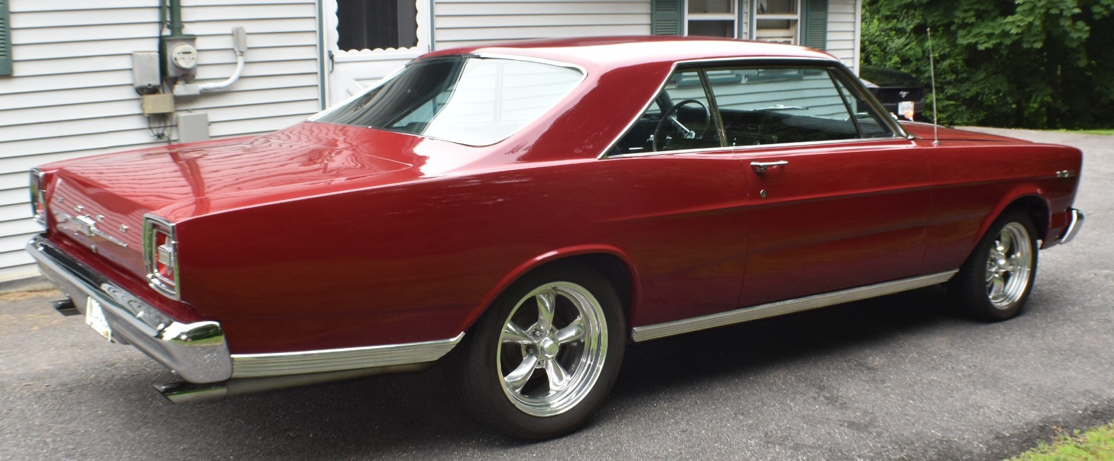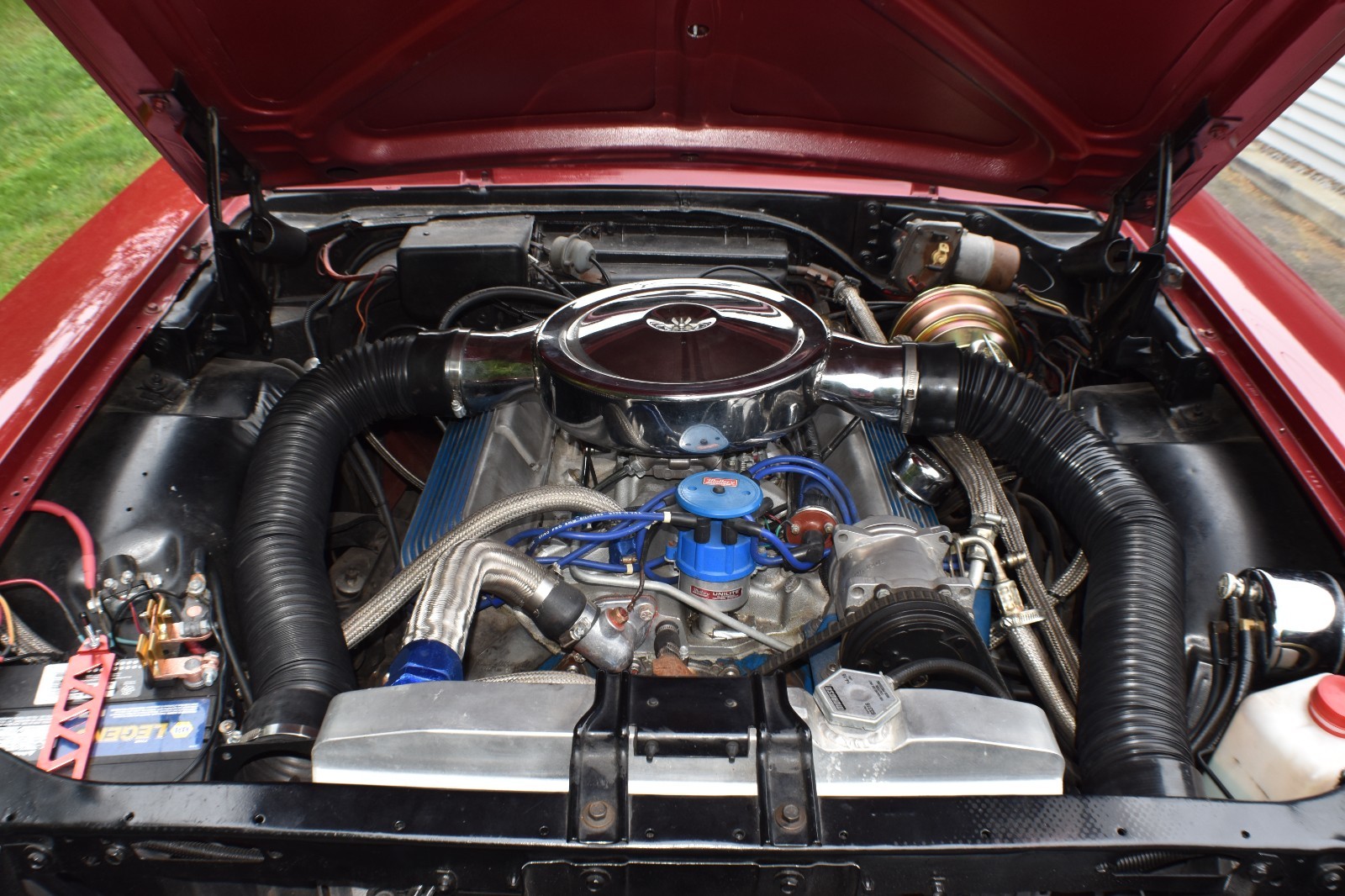 From the date code on the engine, it appears to be the original block. The 428 FE was rebuilt, bored .030” over, runs 10:1 forged pistons, Edelbrock aluminum cylinder heads and intake, Quik Fuel 700 cfm carburetor, Comp Cams hydraulic Magnum flat tappet cam (.519 lift and 224 duration at .050), coated headers, and Mallory ignition.