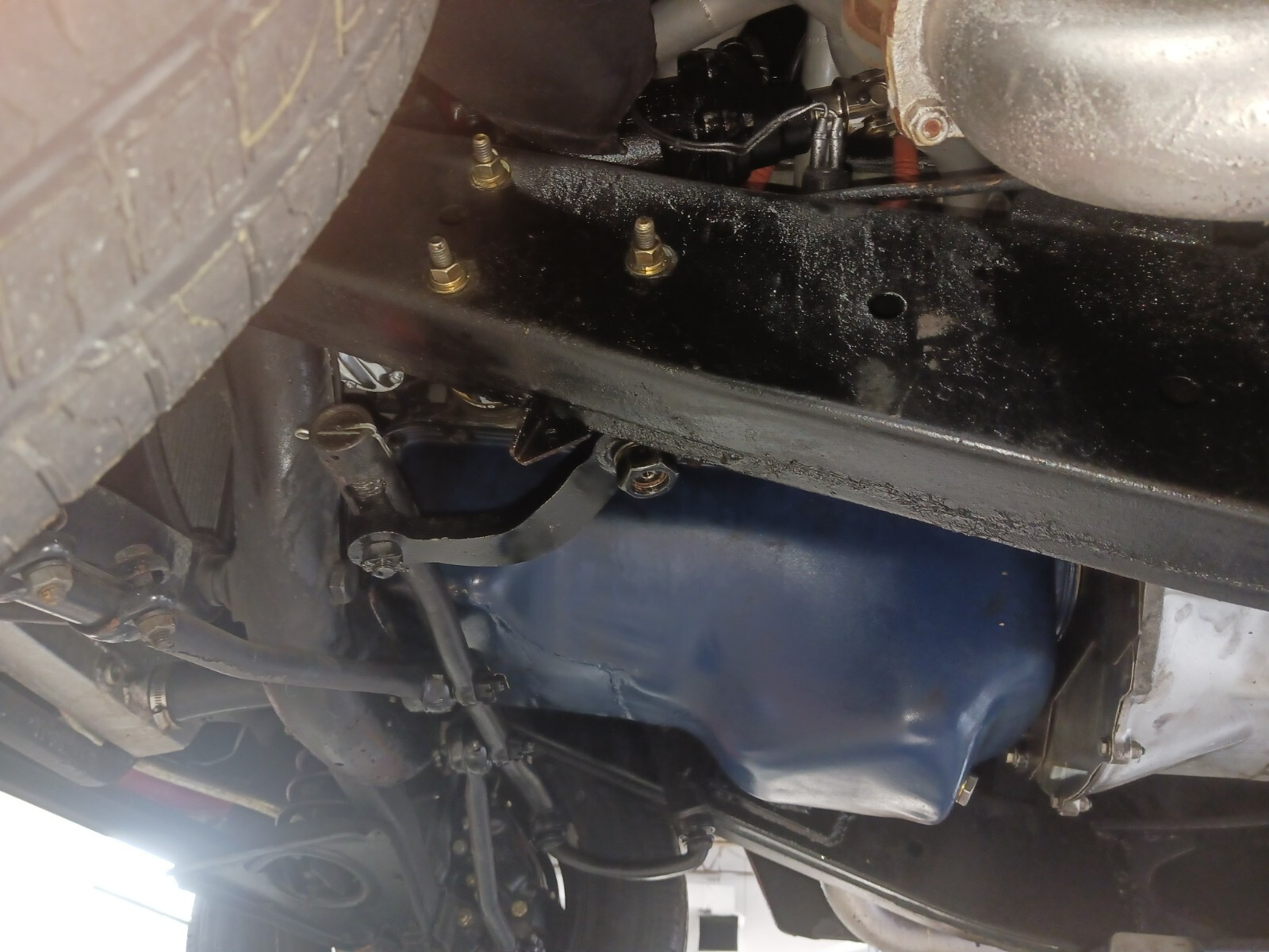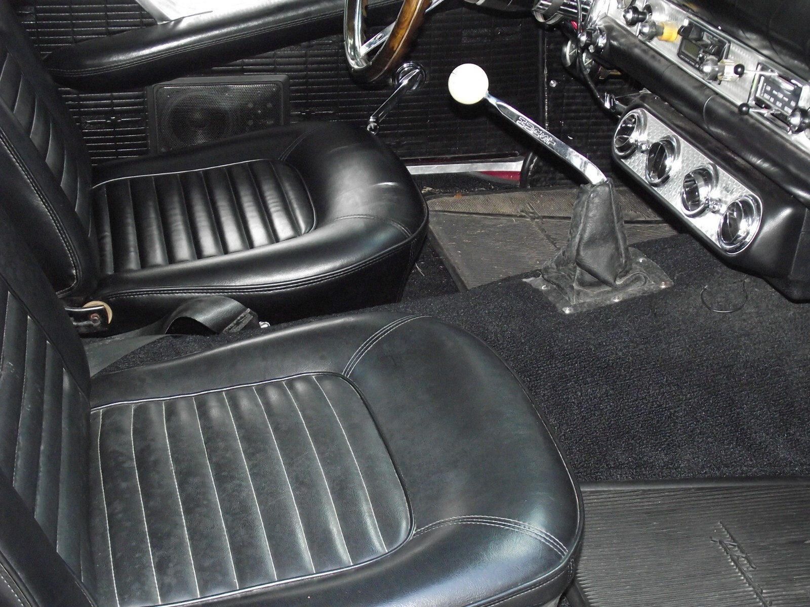 At the mechanic shop front disk brakes and an electric fuel pump were added. Malfunctioning electronic ignition replaced and fuel gauge repaired. Cluster with oil pressure and temp gauges was added . Also the radiator was cleaned and flushed, power steering kit was installed, alternator replaced the generator, emergency brake cable was added. The heater box was repaired and, core and ducting added, header gaskets were replaced. Front end was aligned. New battery was installed. Engine thermostat was replaced. Vacuum wipers were replaced with electric wipers.