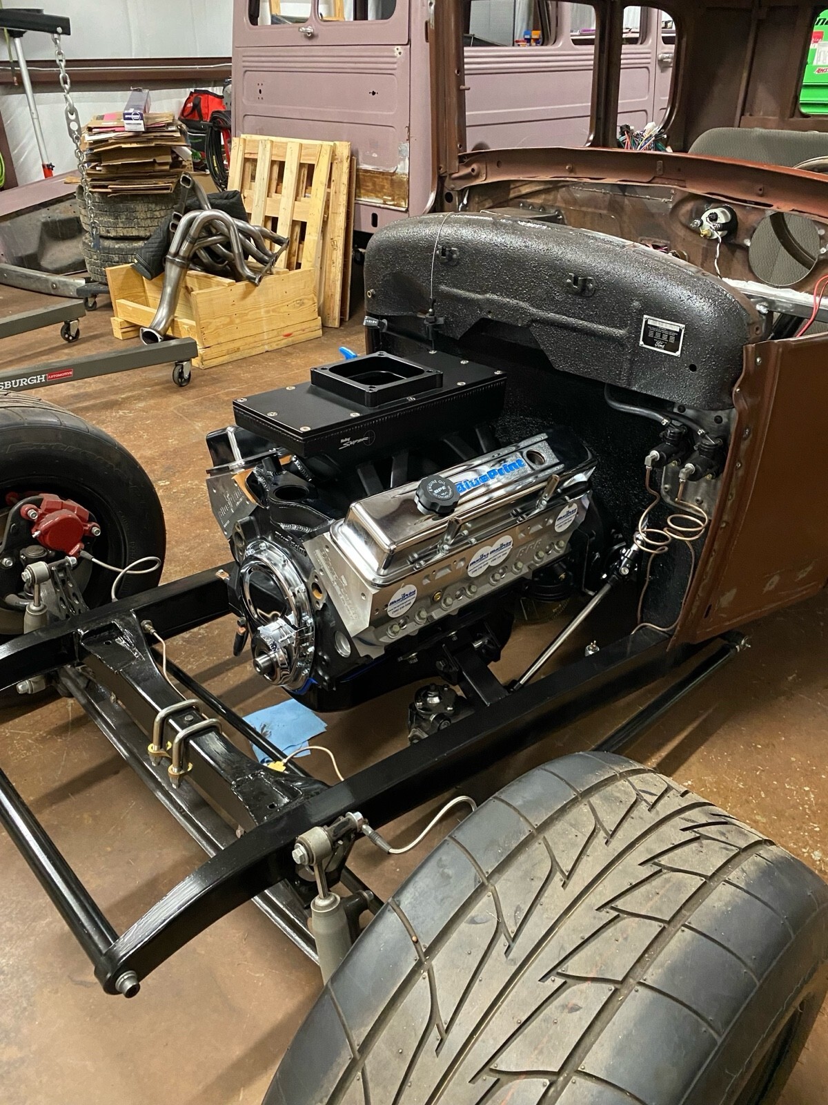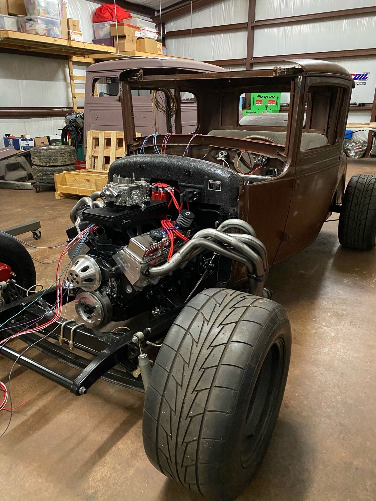 1930 Model A coupe all steel body. This is not complete. Need trans tunnel completed and wood and glass. I have all new glass and rest of wood kit. This have a New Blueprint 383 stroker with a New Monster 700R4 built trans. Runs through a 3” custom driveshaft to a New 8.8 rearend with 3:70 gears. All new Auto meter gauges in a custom 45 Willy’s Aero dash . All this sets on a Riley Frame with Pete & Jake’s suspension and ladder bar rear and QA1 coilovers. All quality parts inverted over 30k. Comes with complete hood and misc parts I have. Tons of build pics