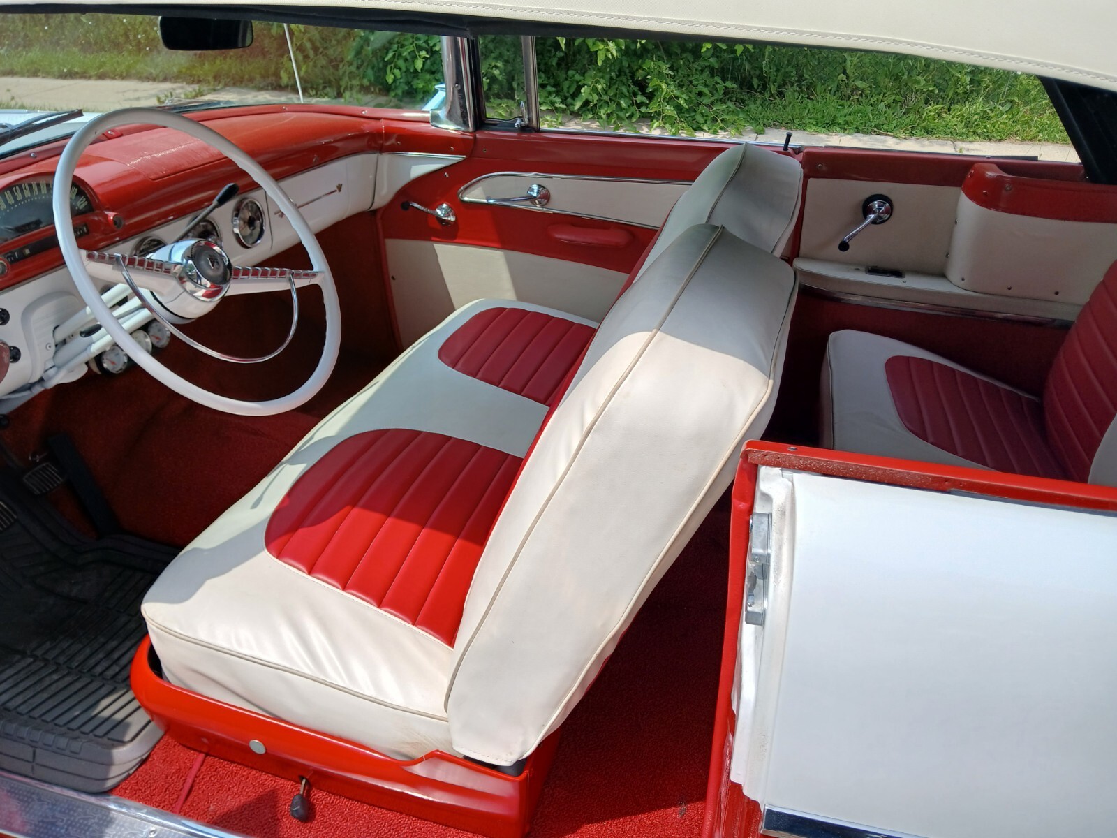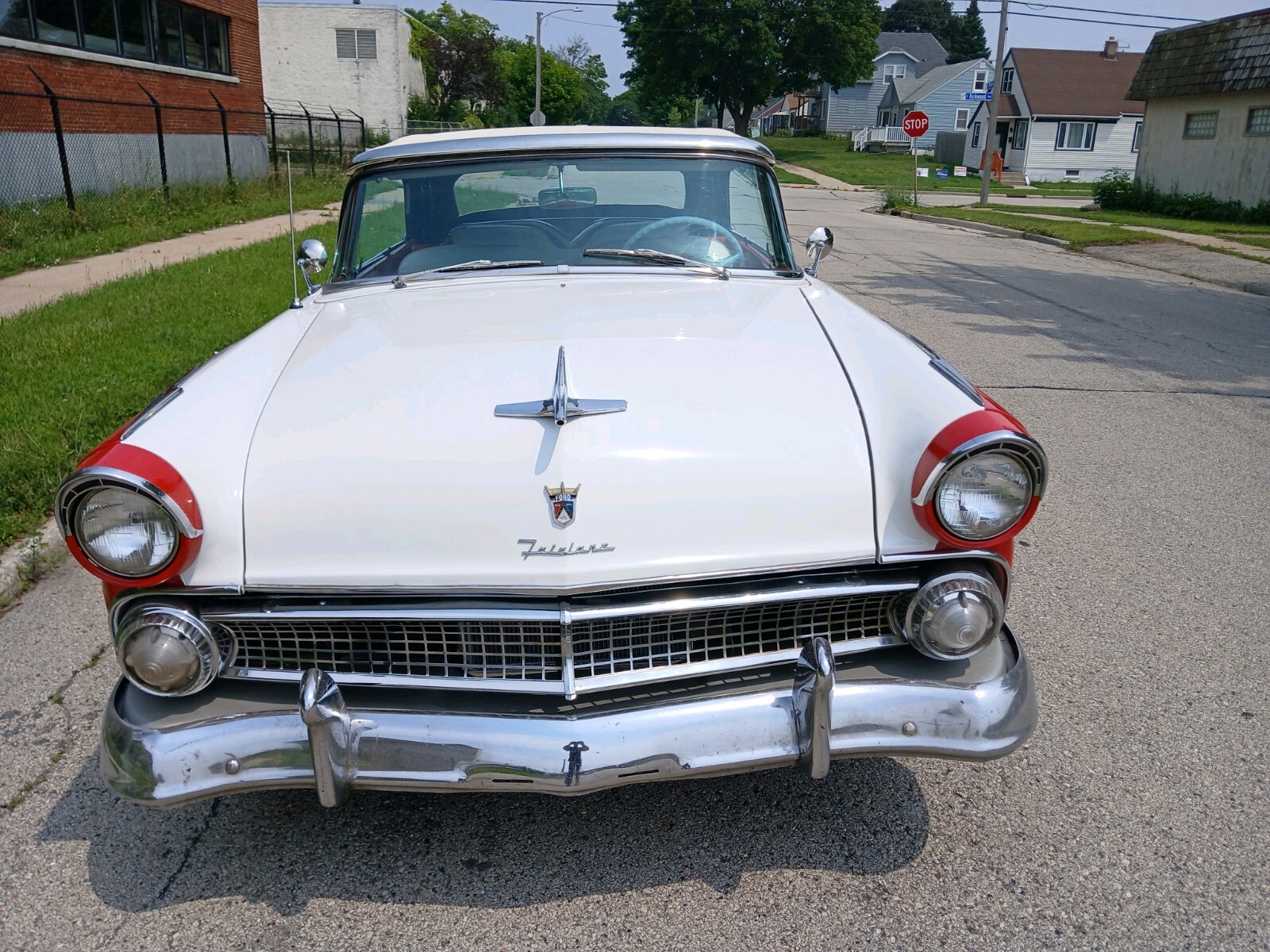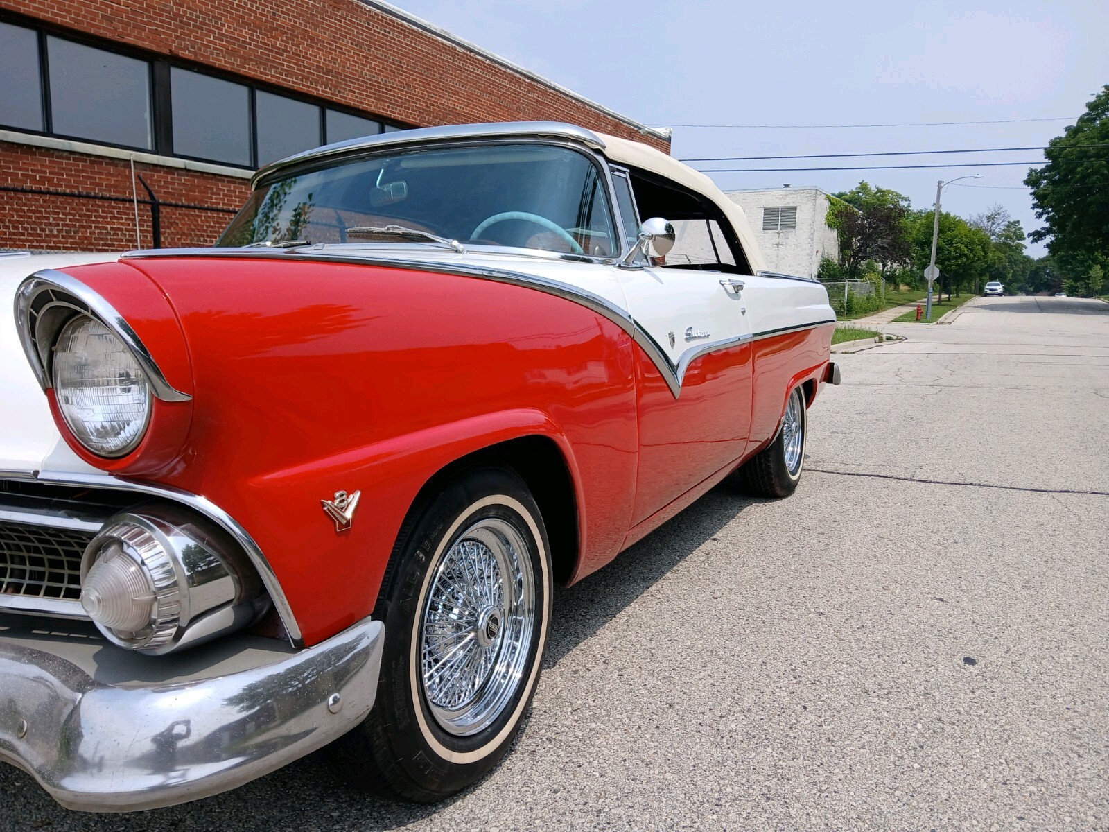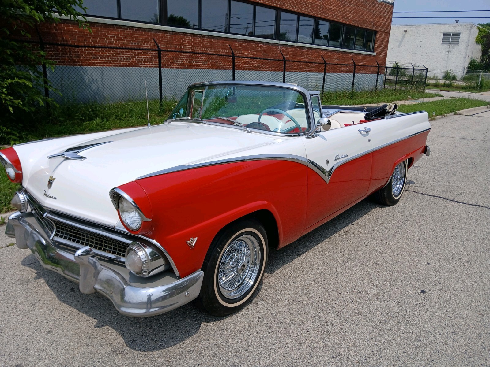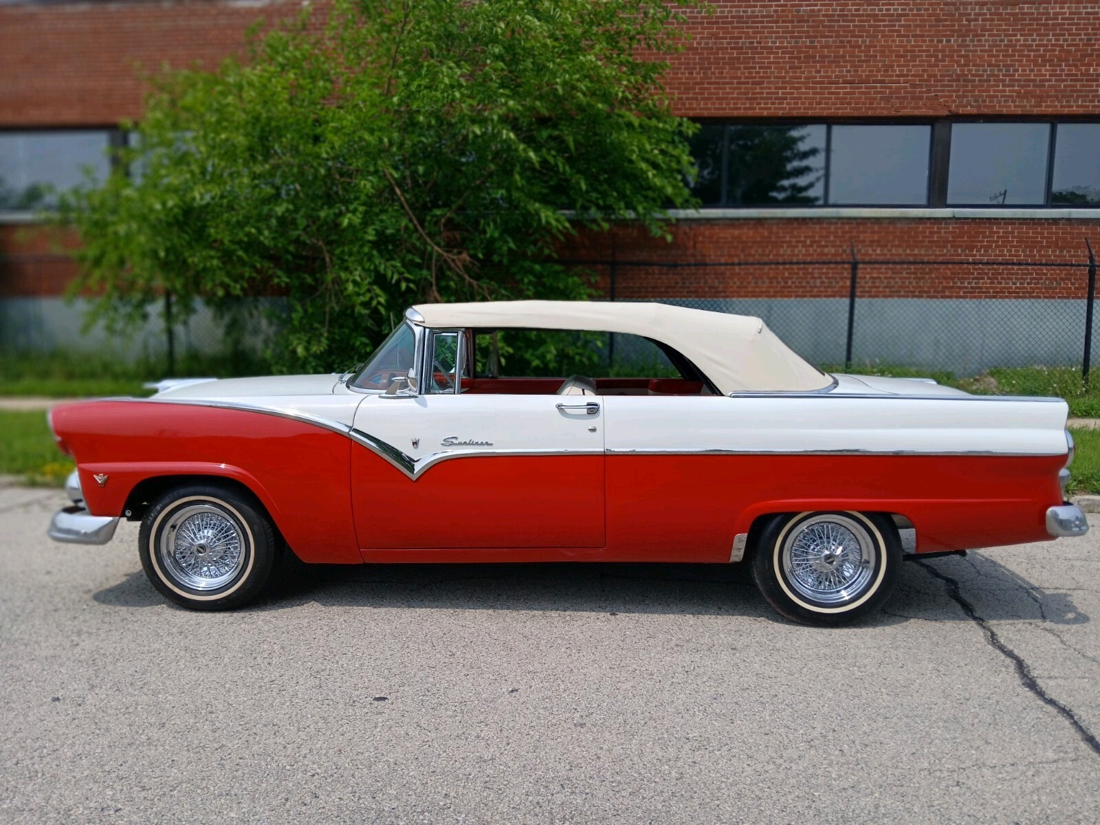 1955 Sunliner. Recent restoration. New top, pads, rear window and power top system. New interior, seats, carpet, door panels. V8 no power steering or power brakes. Three on the tree. Clean WI. title. 12 volt electrical system. Runs good drives good. Wipers, radio,heat, and speedo does not work. Chrome wire wheels with additional red baskets to change up the look.