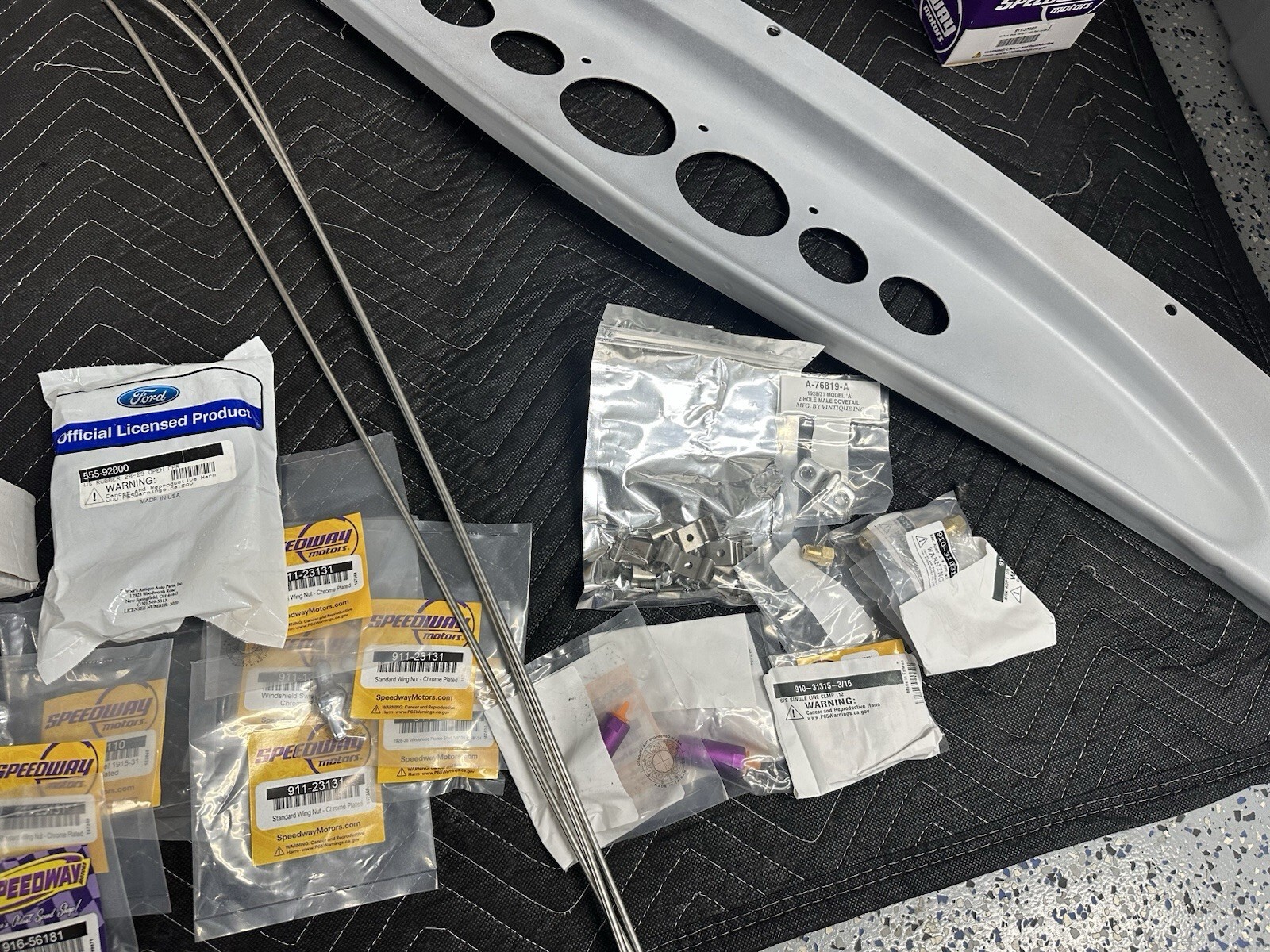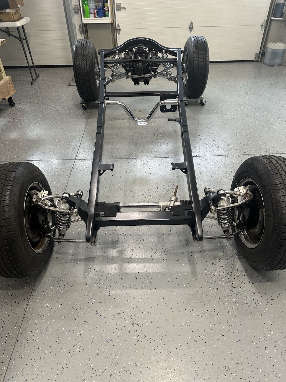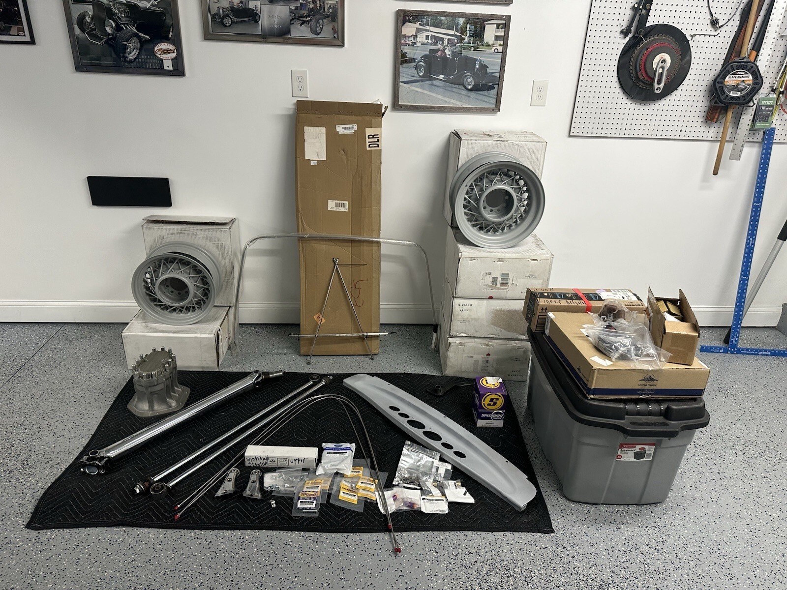 * Body has been Channeled 4 inches to sit over fully boxed Chassis* Nostalgic Jaguar rear independent suspension* Heidts front independent suspension.* The frame has been sandblasted, primed and painted to prevent rust.* Body is 95 year old original all steel waiting for body work. It is coated with epoxy primer.* New steel cowl, trunk and 1932 style dash and grill shell.* New Radiator and chopped windshield frame included.* Comes with (6) brand new primed wire wheels from Coker Tire. (4) 15x8 and (2) 14x6. Rims were $300 each.* Frame is set up for a small block Chevy and TH350 transmission.* Comes with chrome driveshaft.* Gas tank, front seat, chrome steering column and many other parts included.* Engine and trans not included* Have Ma Title