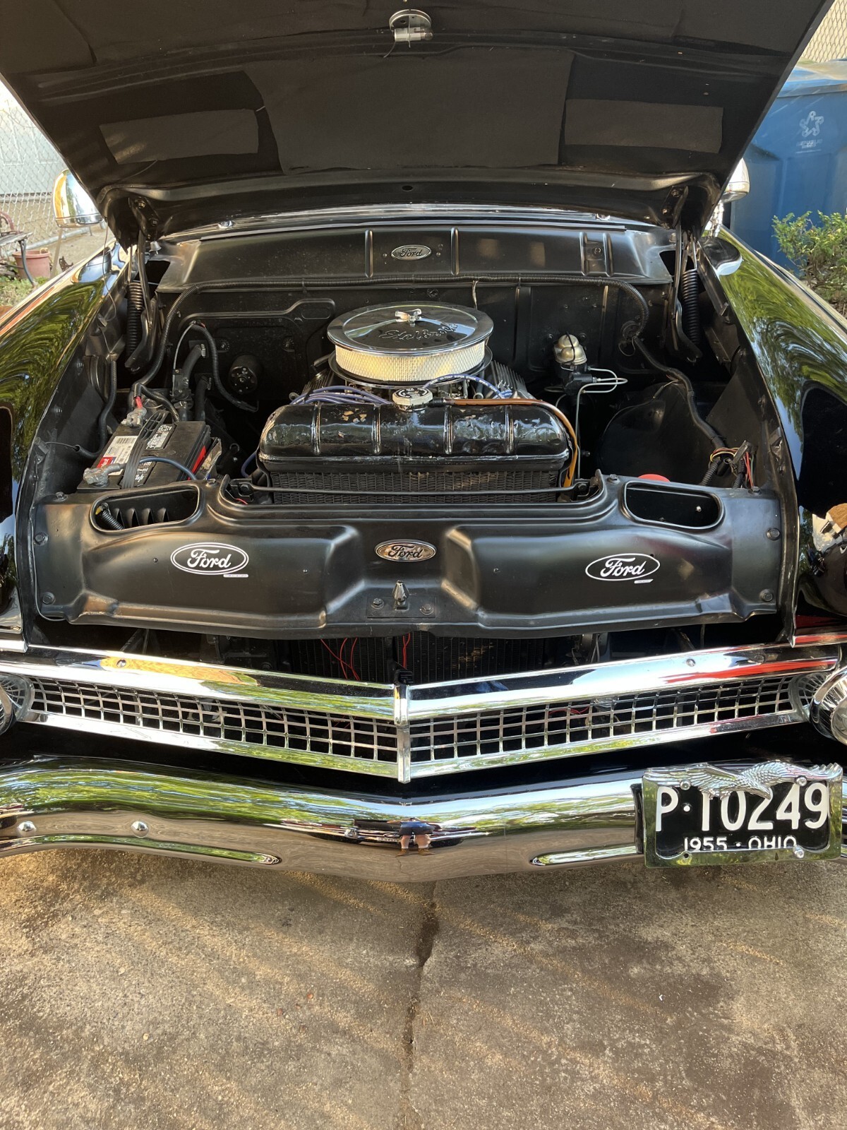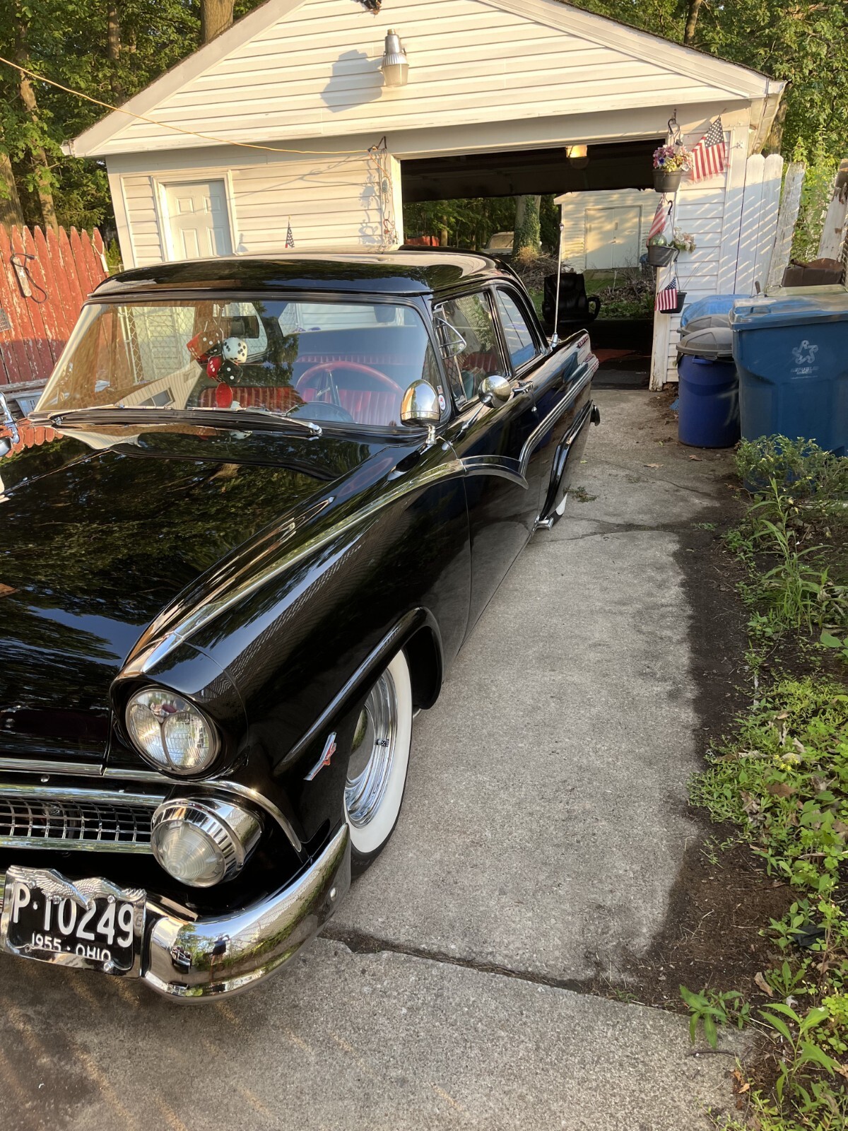 STOP LOOKING HERE IT IS !!!!! 1955Ford Fairlane I am selling it for a elderly friend it was her deceased husbands baby, and dream car. LETS MAKE IT YOUR BABY/DREAM CAR!!! It wears beautiful black paint laser straight. It is powered by a very strong 351 that is sitting in a beautifully detailed engine compartment with a borg warner 5 speed behind it.So lets talk interior. Stunning!! Red and black Vinyl seats matching door cards all around 50s feel when sitting in it, while looking at a one of prettiest dashboards of the times. Underside is clean there are no signs of floor pan repairs painted black many years ago. Side pipes are not hooked into exhaust they are capped for protection very easy hook up for any exhaust shop trunk just as clean and detailed as rest of car!! now make a offer we can not refuse . 500$ non refundable deposit is due within 48 hrs.' of sale. Balance is to be paid in cash at time of pick up you hand me cash i hand you tittle.CAN STORE CAR UP TO 3WKS FOR FREE BUT YOU MUST PROVIDE PROOF OF INSURANCEFOR IT. Tittle does say actual miles and odometer reads44955. THANKS FOR LOOKING STEVE