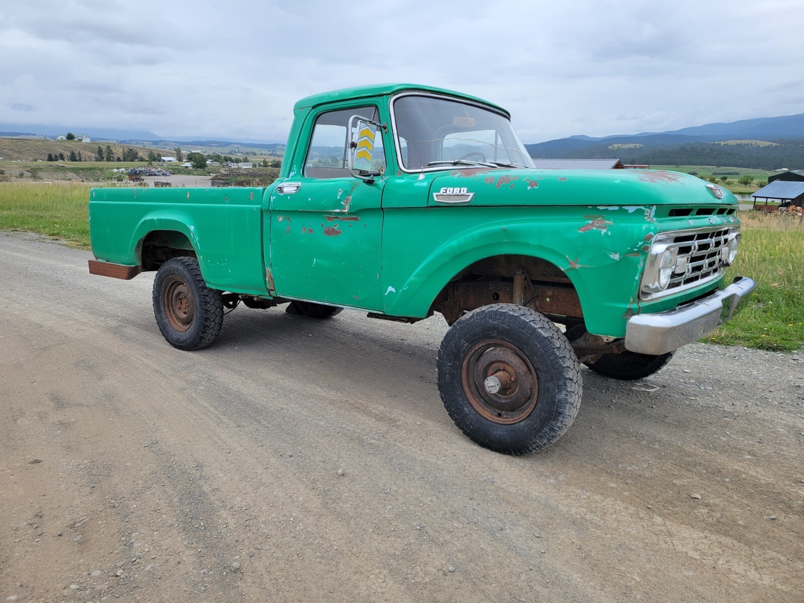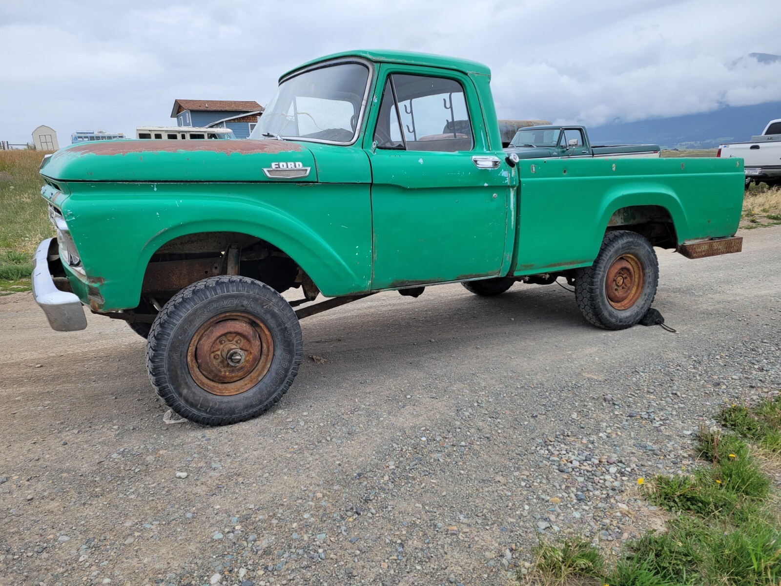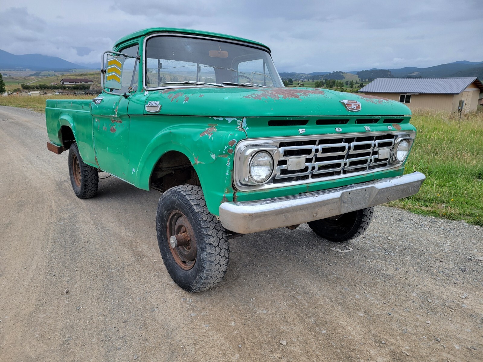 1964 Ford F-100 Custom Cab 4x4 Pickup Truck. Solid body, classic highboy style