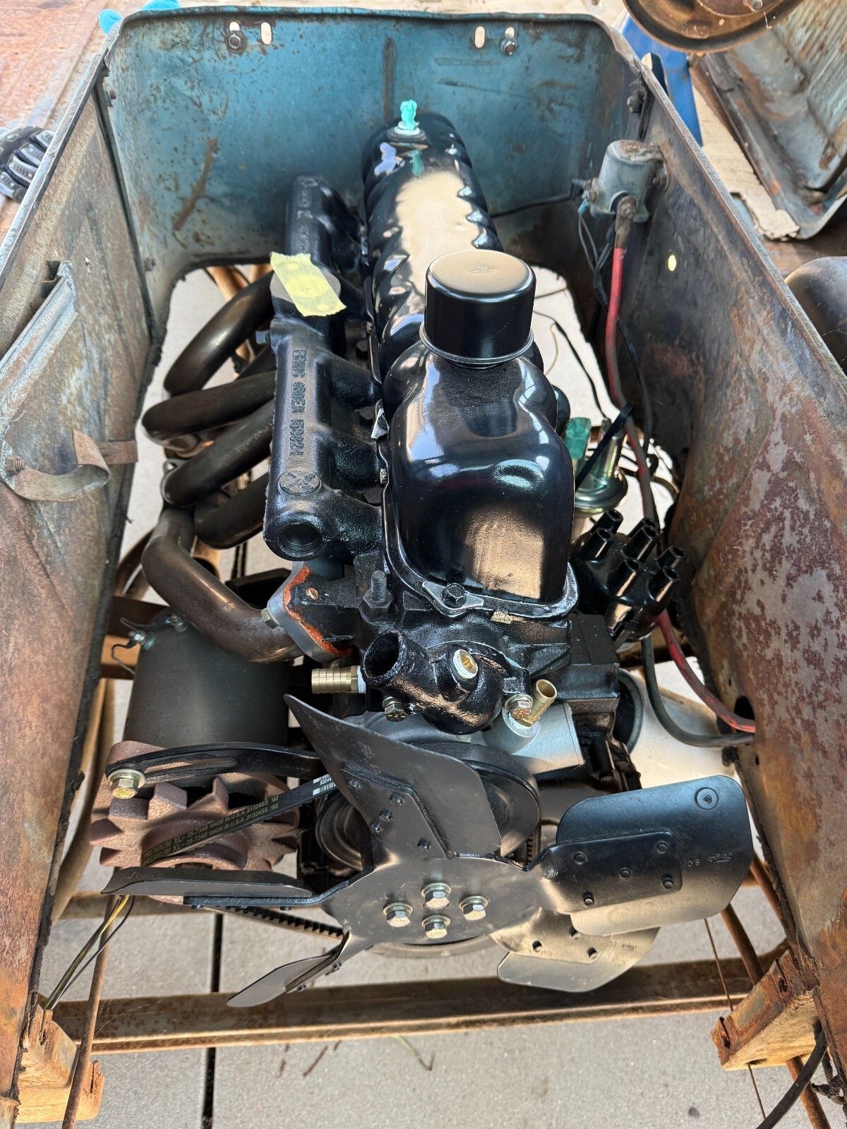 The bad: New head but block needs work (no compression on #6 cylinder). Salvage title (no major body or frame damage). Rusty and will need repairs and patch panels, mostly at the bottom of the windshield and at one door hinge. Was a regular driver before old engine spun a bearing and this 200 was swapped in.