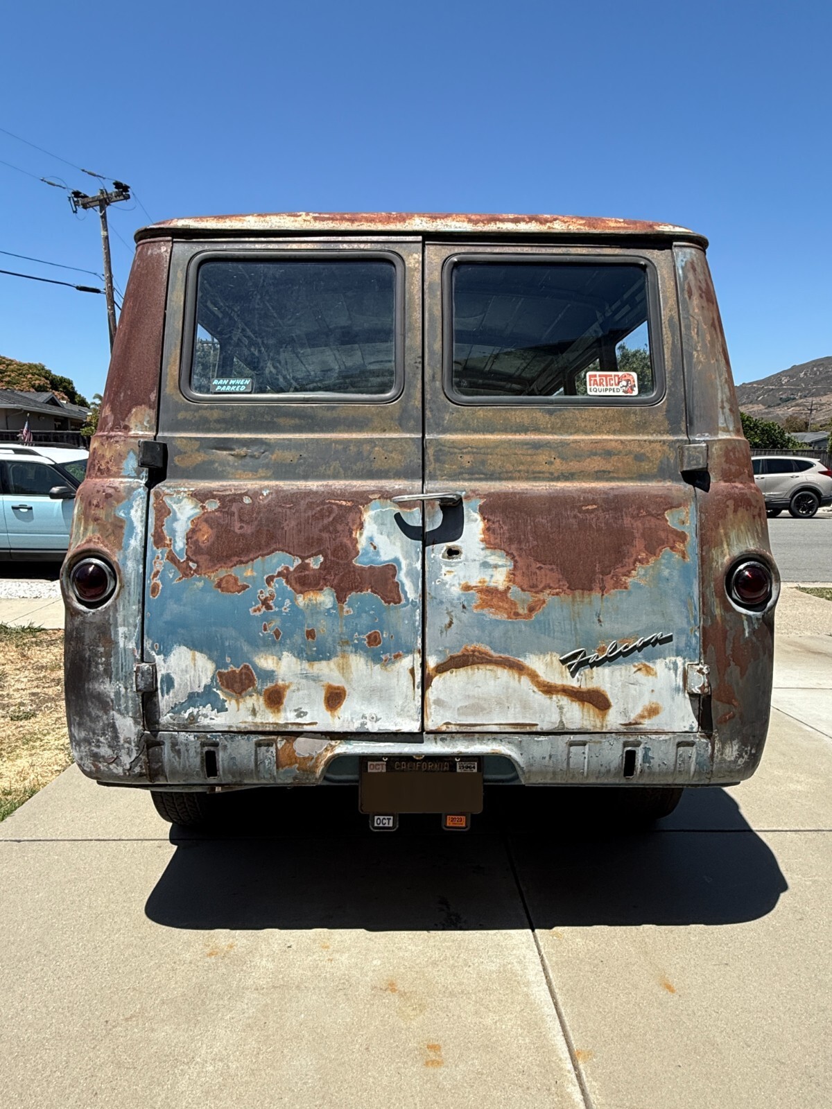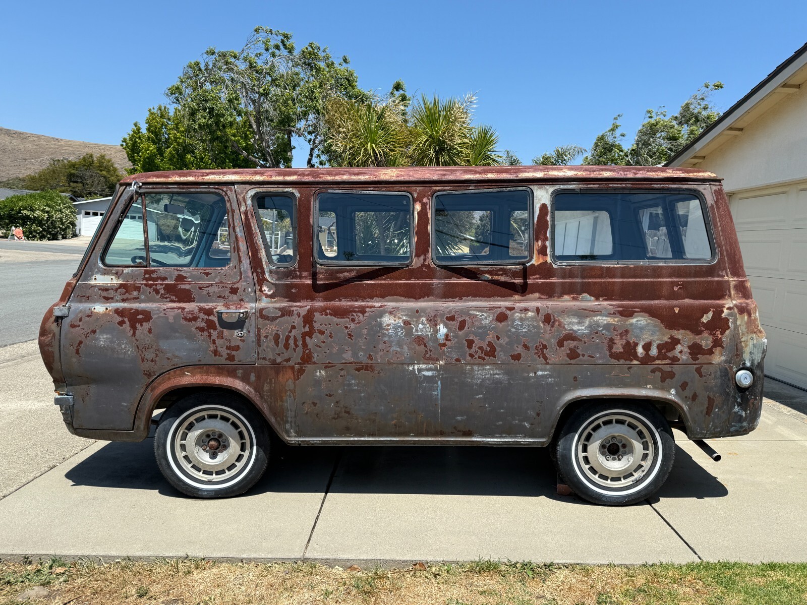 1964 Ford Econoline Falcon Deluxe Club Wagon. Clean salvage California title in my name, YOM plates, last registered in 2023. Original California van. Ford 200 six cylinder engine with professionally machined and rebuilt head (zero miles on it, never run). Block has poor compression on cylinder #6 so the build was stopped. Engine rod and main bearings look good, checked with plastigage and turns over nicely. Compression issue likely broken piston ring on #6 cylinder. Have receipts for cylinder head machining/rebuild (see photo). Rebuilt radiator (over $500), rebuilt generator, new water pump & thermostat, new fuel pump, professionally rebuilt harmonic balancer, rebuilt distributor, headers with new dual exhaust, mustang gas tank, and much more. 3 speed synchro transmission with new transmission seals, newer clutch. Transmission shifts perfectly. Includes original belly pan (not shown) and original bumpers not installed. All lights work. Matching VIN numbers on ID tag, and stamped in at least two locations on the body.