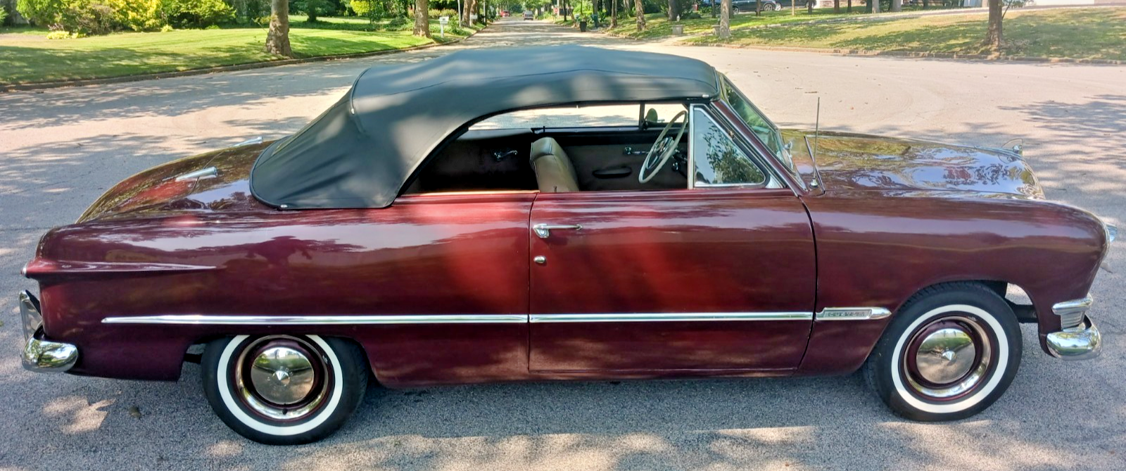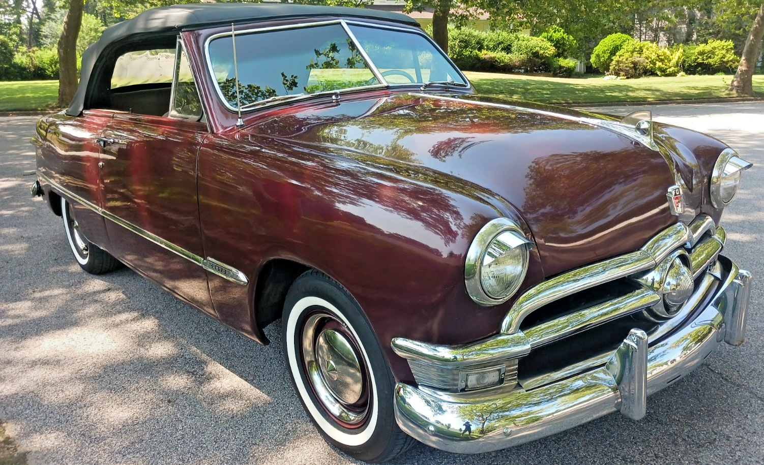 NICE 1950 FORD DELUXE "SHOEBOX" CONVERTIBLE WITH FACTORY 3.9L FLATHEAD V8 AND 3 SPEED MANUAL TRANSMISSION WITH LOW MILES THAT HAS HAD AN OLDER RESTORATION AND SOME RECENT UPDATES. TURN-KEY AND READY TO DRIVE!!!