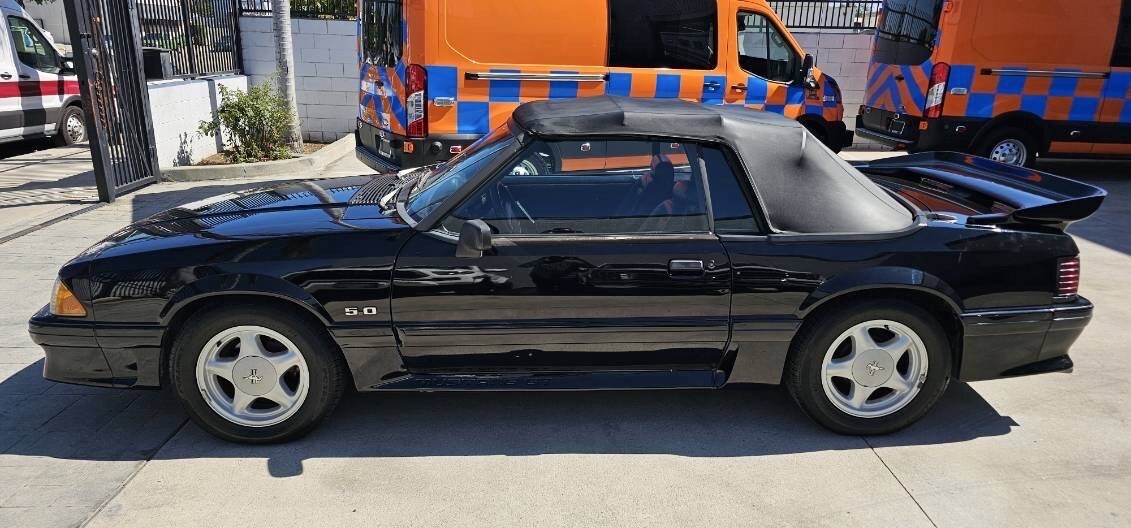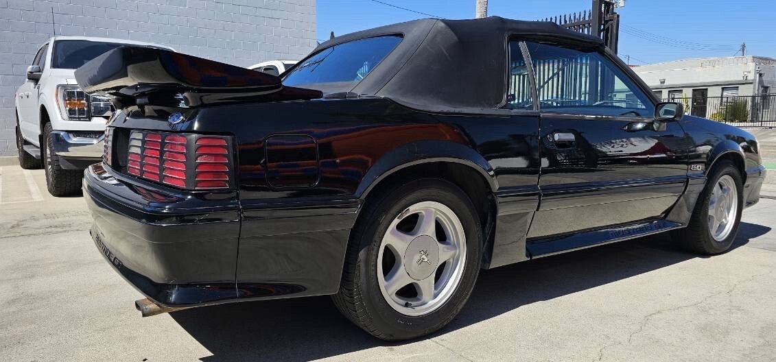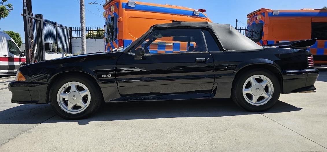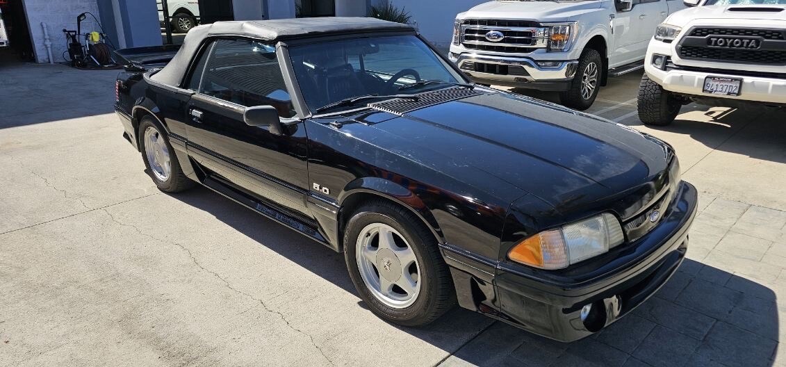 1993 Ford Mustang GT convertible. Clean title car. Car has a 5.0 V8 engine and runs absolutely perfect. Automatic transmission shifts as it should. Dash shows 85,958 miles. Mechanic told me I should replace the transmission mount soon. I had the suspension serviced and I installed new shocks all the way around. I am currently driving the car about 3 times a week so i have been able to find any issues. No issues have come up. Car stops good. All lights work. Convertible top works well. I just installed a new radio and speakers. Car is completely road worthy and you can drive it anywhere. There is no rust showing anywhere on this car. I was underneath this car when it was at the mechanic shop and it is all black underneath not rusty at all.