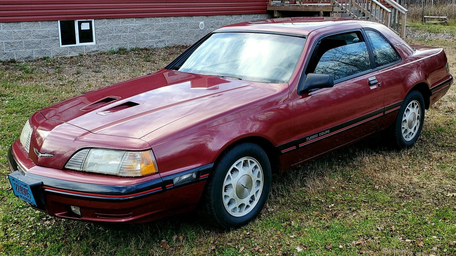 The 1988 Ford Thunderbird is a classic coupe with a sleek gray exterior and matching interior. This 5-seater car boasts a 2.3L engine with a manual transmission, perfect for car enthusiasts looking for a vintage driving experience. With features like power windows, cruise control, and sport seats, this Thunderbird offers both style and functionality. Made in the United States, this well-maintained vehicle with only one previous owner and 112,000 miles is sure to turn heads on the road with its distinctive design and vintage charm. One family. Needs tires, exhaust, and probably 3rd gear syncro. Runs well. Should get new fuel from sitting in the past couple years too much. Gets started regularly. Newish fuel pump and fuel pressure regulator. Should probably get an O2 sensor. As Is of course.