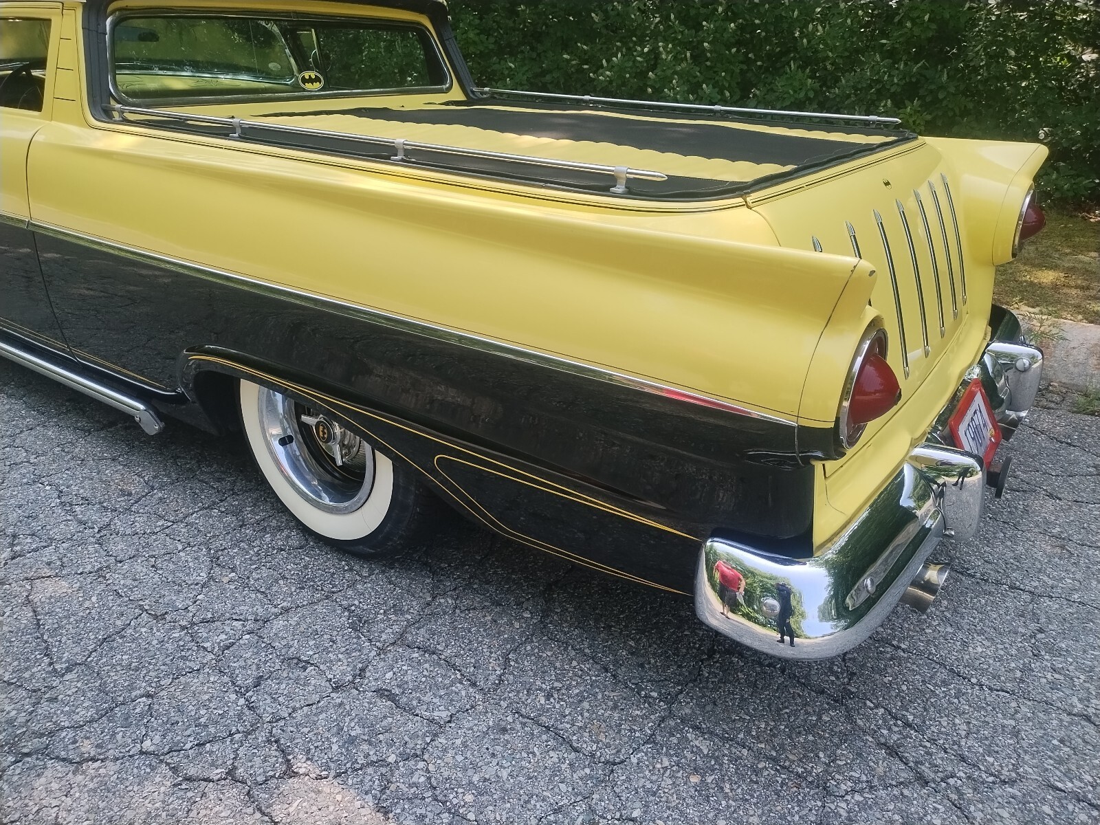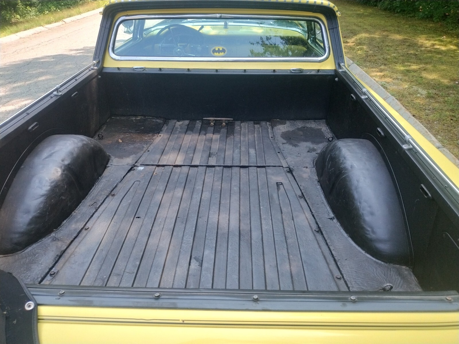 Here is Bumblebee Batman! This Custom built car belongs to a friend who is not online. It was built in the early 1990s by builder "Brad" Royal Barrows. It has an early 1980s El Camino front clip. Hydro power steering/disc brakes, 67 GTO hood scoop and early 1960s Corvette front bumper. The engine is a 1969 Cadillac 472 with 365 HP and a recent professionally rebuilt THM 350. It has electric door poppers, dual Frenched antennas and a custom made tonneau cover. It recently had new brakes including calipers, rotors and hoses. New water pump, thermostat and belts. New High Torque starter. New Aluminum radiator with shroud. The car runs and drives very well. The owner is offering the car for sale as he needs to downsize and is not currently using it.