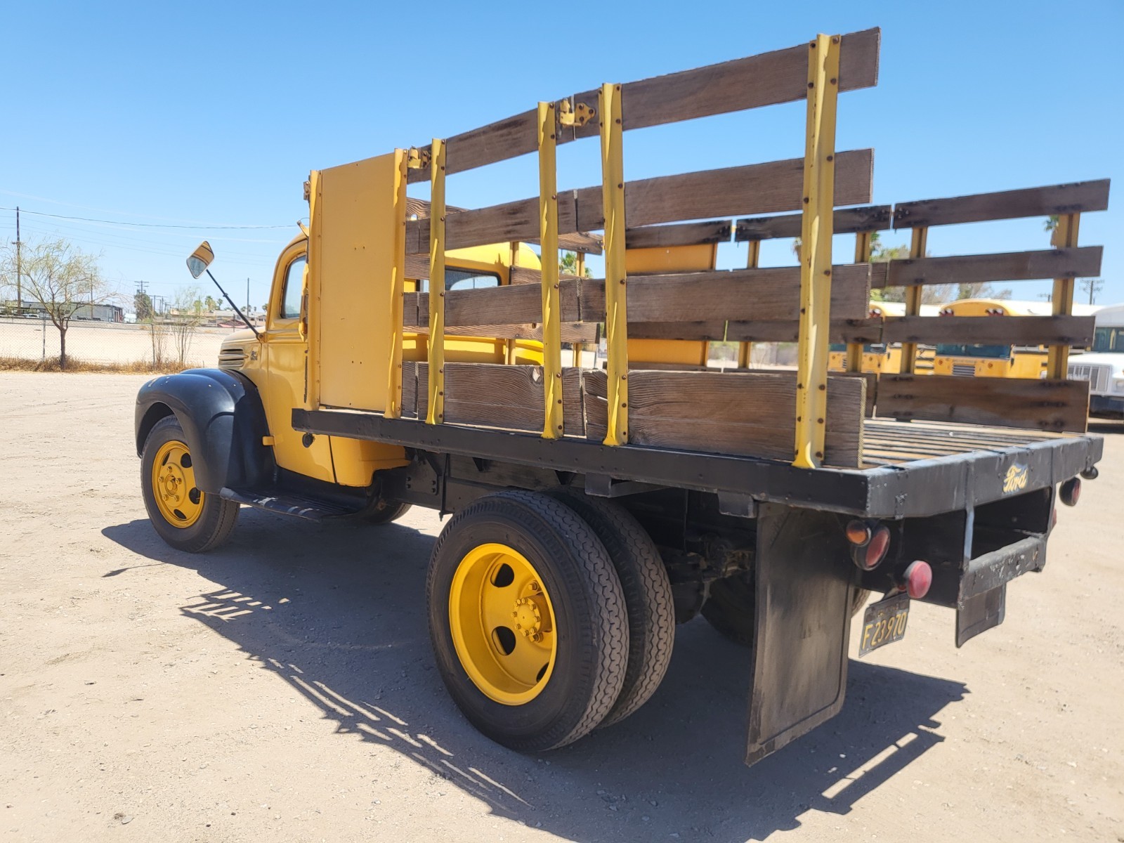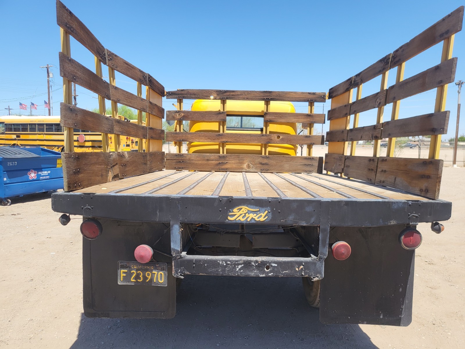 1946 FORD FLATBED/STAKE TRUCK WITH LIFT GATE. ORIGINAL FLATHEAD V8 GASOLINE ENGINE, 4 SPEED MANUAL TRANSMISSION, 7.50 X 20 TIRES. ONLY $15,500.00 OR BEST OFFER. CALL DAN (760) 427-2645