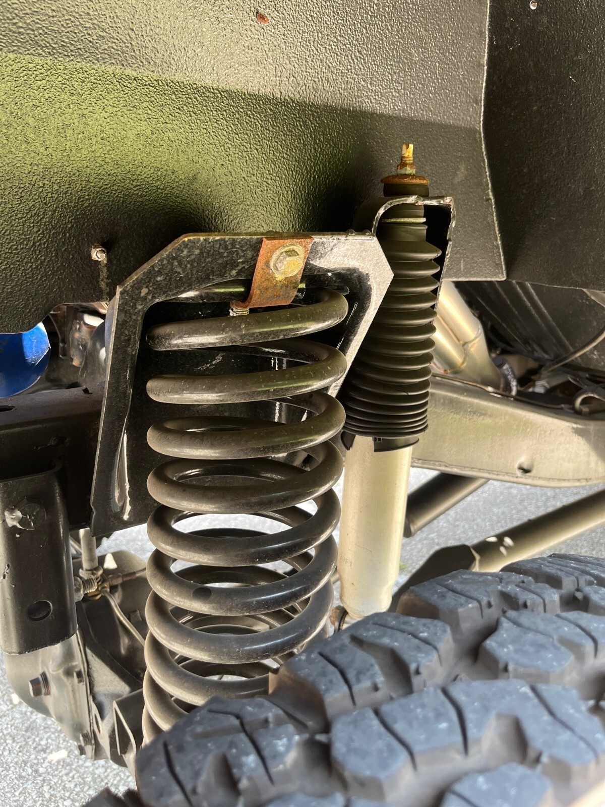 The 2.5 lift suspension system includes high pressure shocks, long travel radius arms along with a 1" body lift. Truck has power steering, power front and rear disk brakes. The truck has the factory Dana 30 and 9" rear.