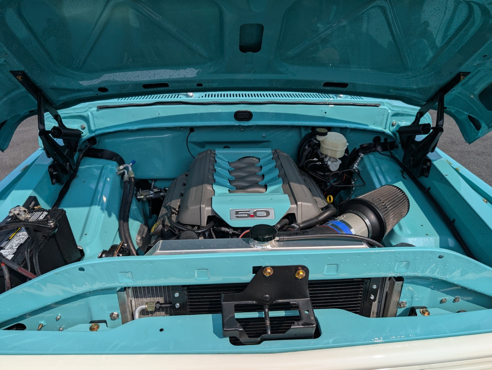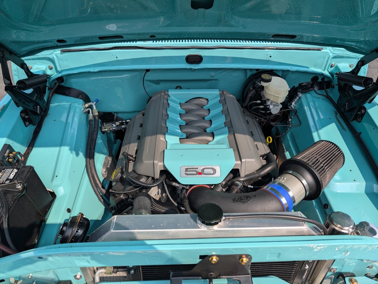 Coyote 5.0L and 6R80 from (2015 Mustang GT with 32,000)Absolutely no rust, solid truck.All new parts, glass, gas tank, wiring, rubbers, exc.Stainless exhaust with Borlas (sounds awesome)Team 321 front end4 Link rear suspensionIdidit steering column8.8" Rear end with 3.55's4 Wheel disk brakesDakota digital gaugesRino Lined Bed