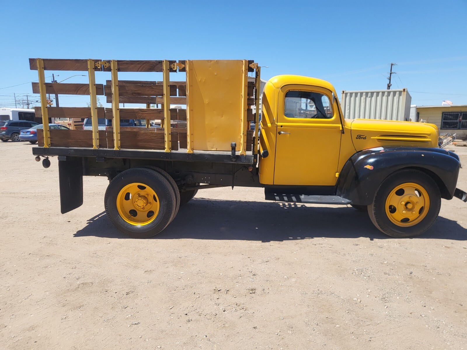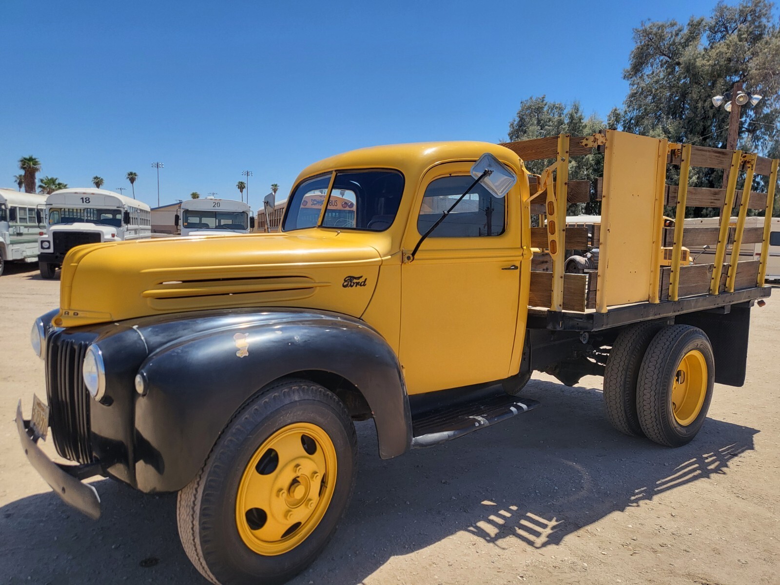 1947 FORD FLATBED/STAKE TRUCK WITH LIFT GATE. ORIGINAL FLATHEAD V8 GASOLINE ENGINE, 4 SPEED MANUAL TRANSMISSION, 7.50 X 20 TIRES. ZERO RUST! ONLY $14,500.00 OR BEST OFFER. CALL DAN (760) 427-2645