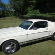 Mustang rides with good rubber tires all around. dual exhaust 67 GT tips. GT gas cap. GTA emblems