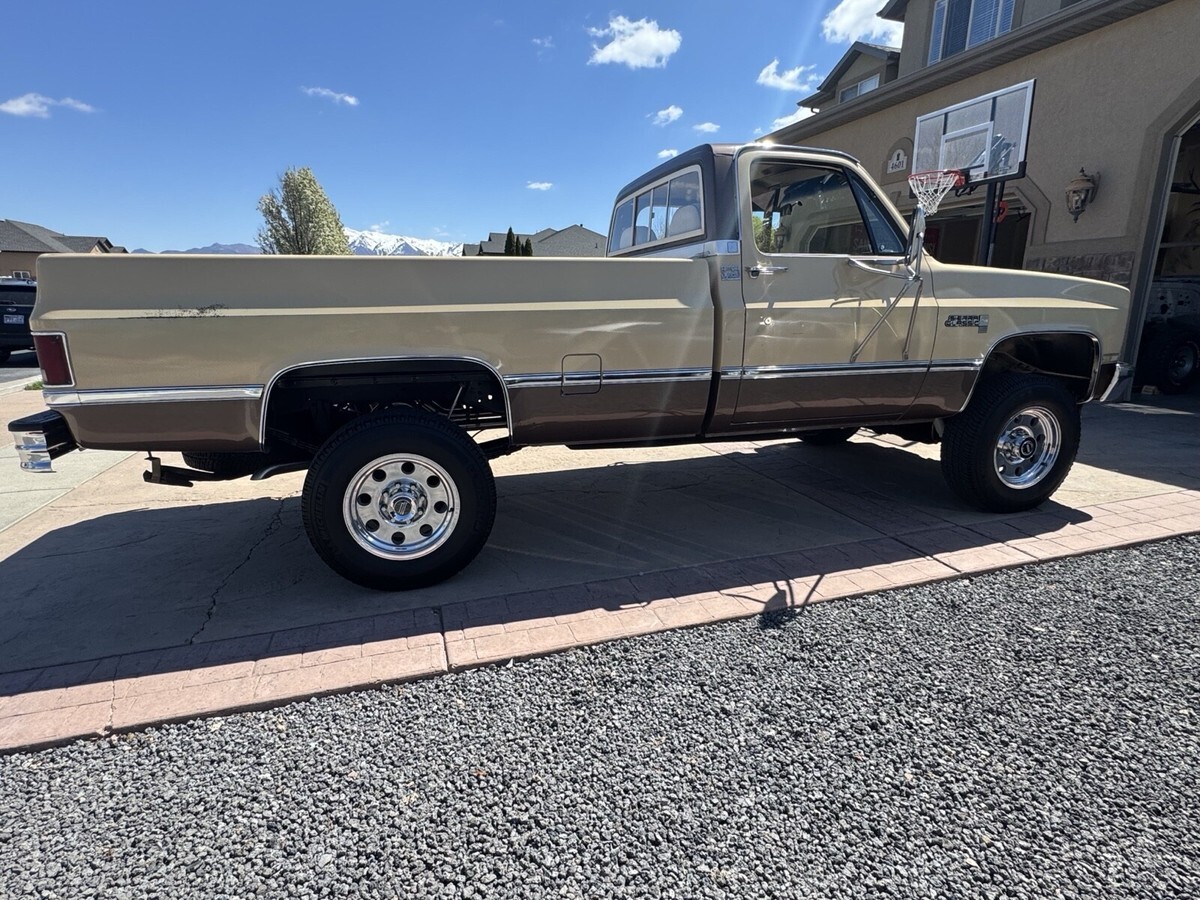 This 1982 GMC K2500 is a restomod with fuel injected 454 that the owner has had for 1 year. The vehicle runs great and is mainly used for weekend drives. The color is tan/brown and the title is clean. The mileage is 56000 original miles