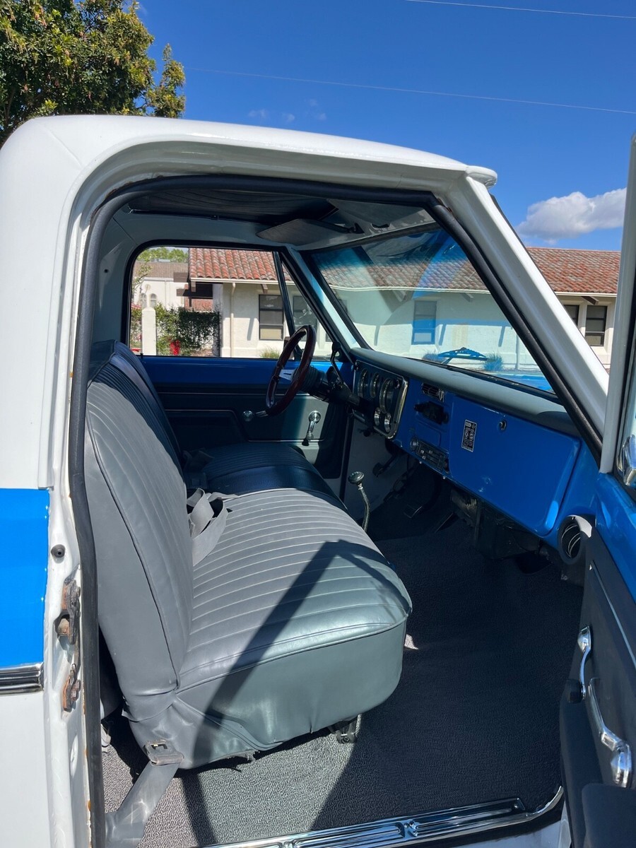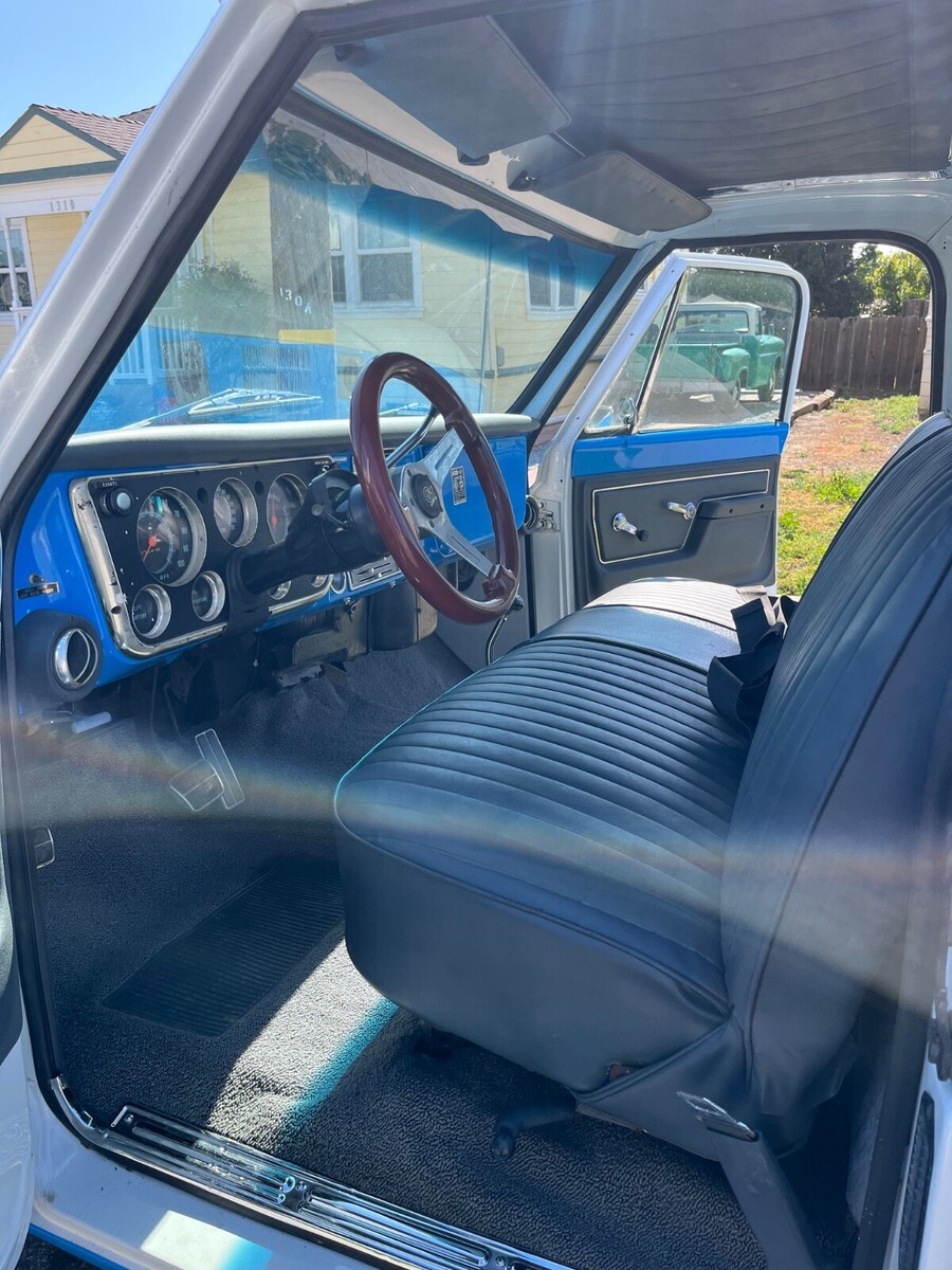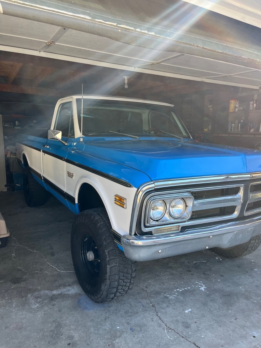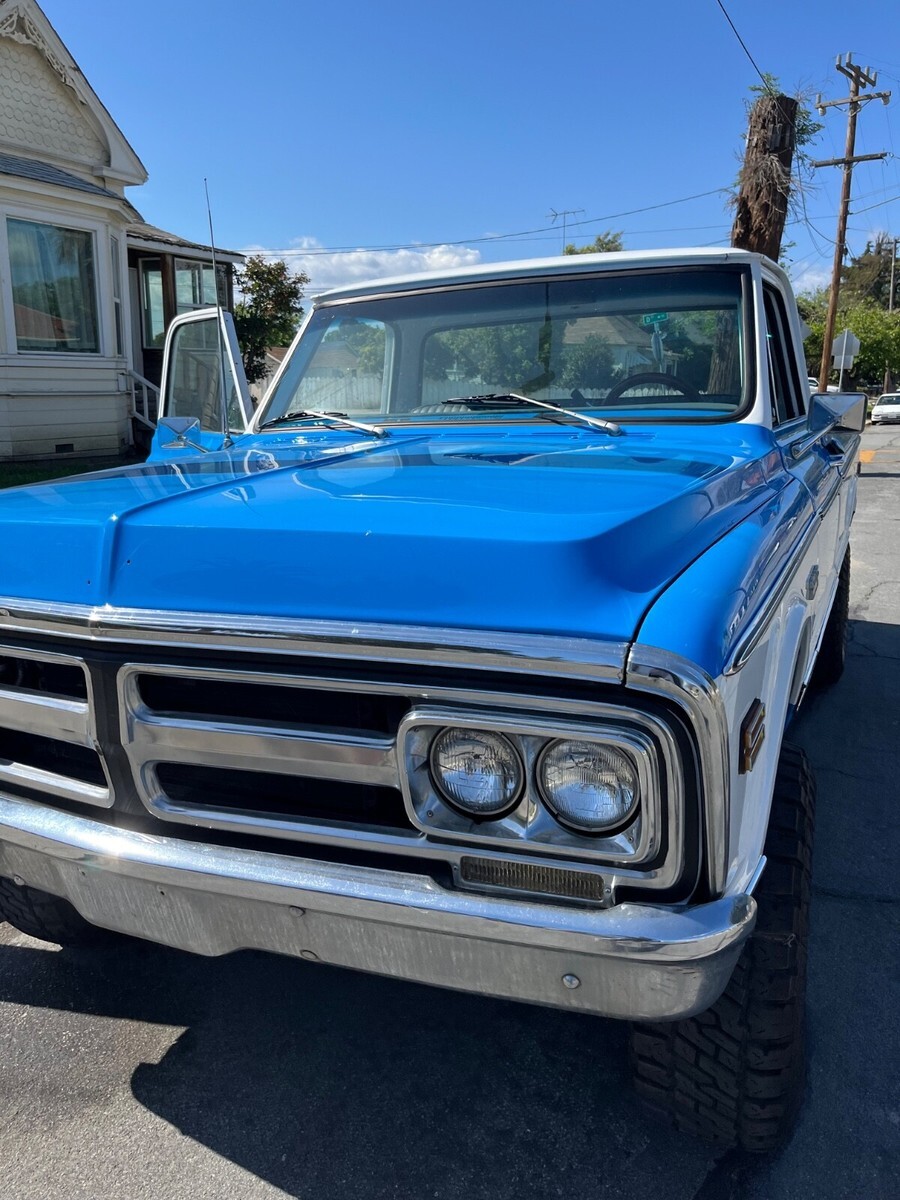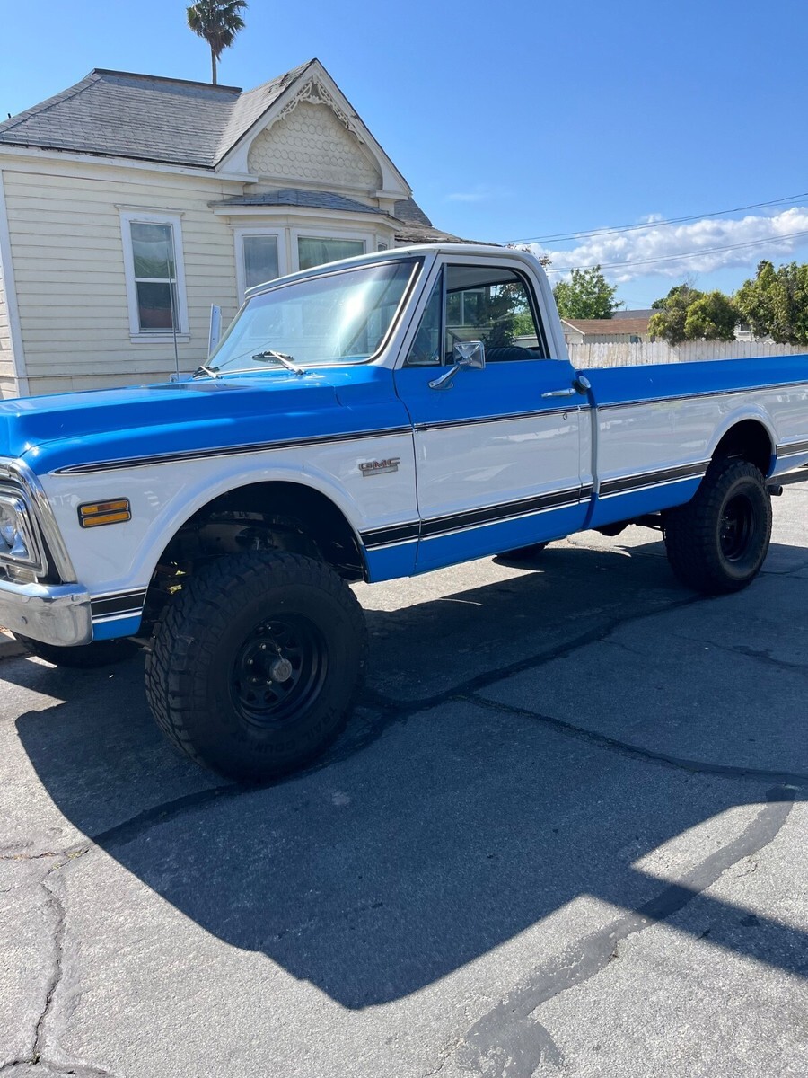 This an original California truck bought brand new here in Hollister California. It has the Sierra Grande package with working A/, disc brakes, power steering, power brakes and 12 bolt rear axle with 3:73 gears. I have all the sales documents and a huge folder of maintenance since new. Truck was originally yellow but opted to change her out in beautiful Hawaiian blue and white. The truck is outstanding and was restored 2 years ago with all new molding on the exterior, new grey interior and all mechanical components rebuilt 20,000 miles ago . I installed a 4” lif, new 35” Cooper mud terrains that looks fantastic no sag fully leveled. The motor is a mildly built 350 with a small cam and roller rocker, nothing to drastic and very reliable. This is a rust free truck, semi frame off restoration with all new polyurethane mounts throughout. I get thumbs up whenever I drive her. Call with any questions before bidding. 831-801-7759 ThanksThe only reason I am selling it or considering selling it is I have too many vehicles and restoring 2 more Chevys and a GMC that I am working on.Paint job alone on this truck was more than 15k.
