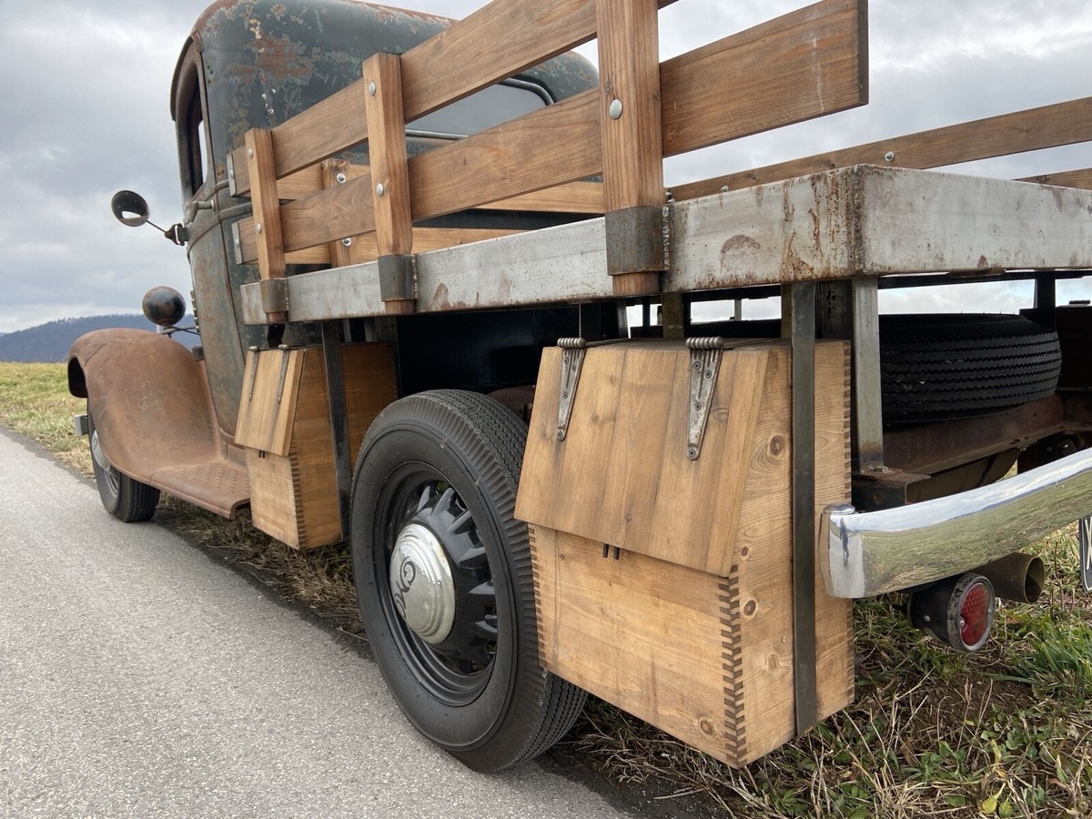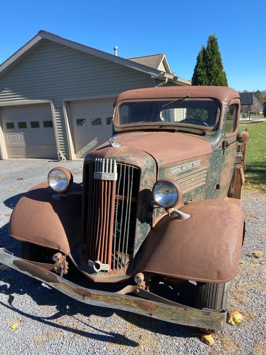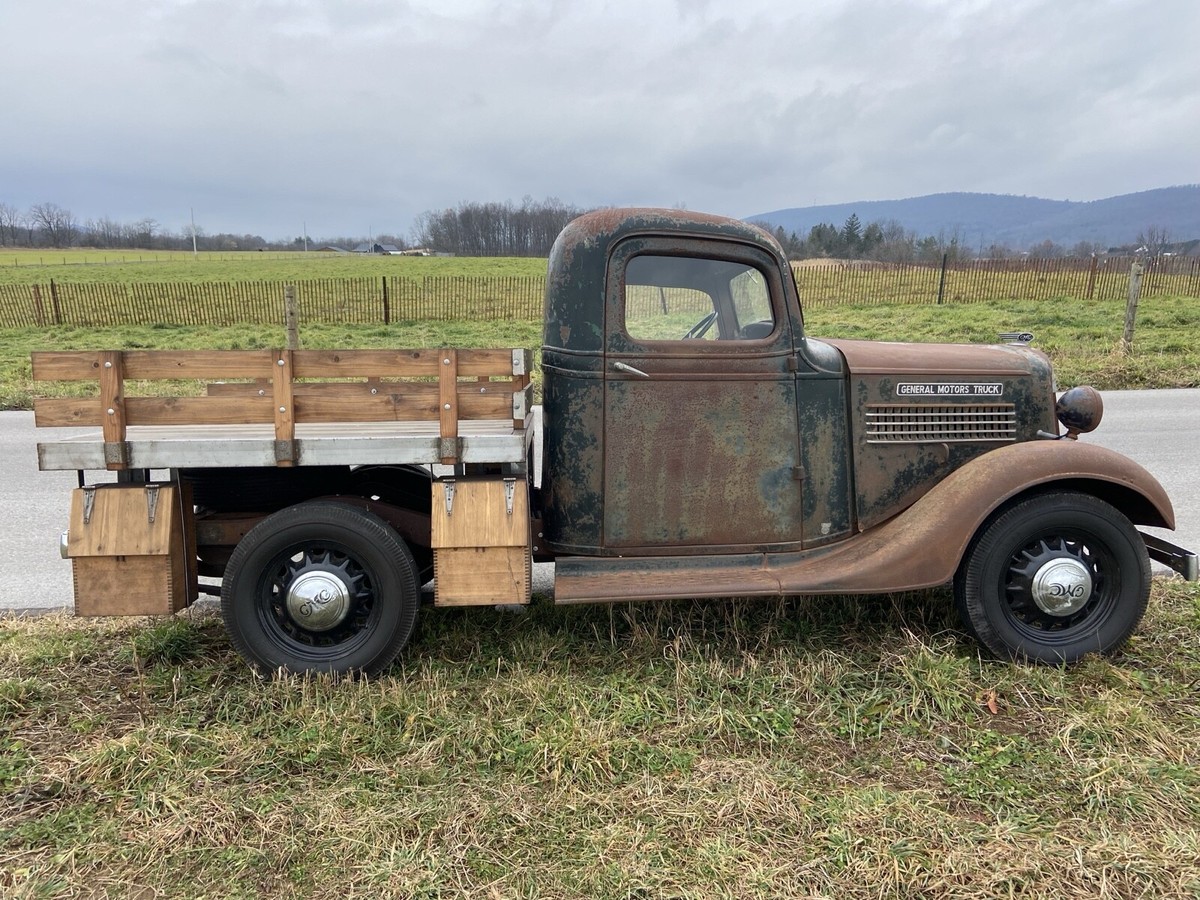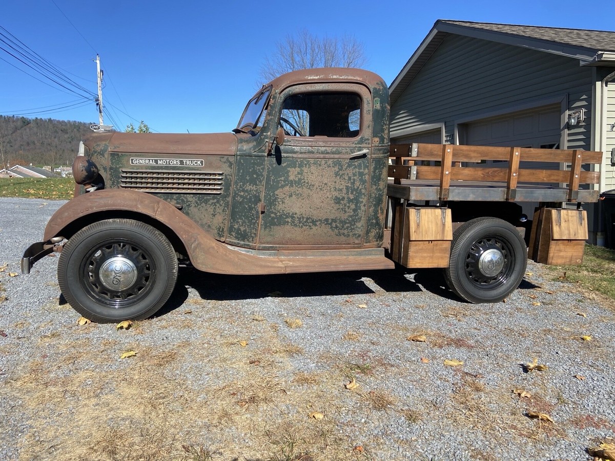 Pennsylvania title in my name. Finished my 4 year build of this 1936 GMC flatbed truck. I bought the body and chassis in Camarillo California. Flatbed has been built from scratch to fit the 36 shortbed chassis using cedar for the custom storage boxes and planks. The body has been kept original looking to keep the ultimate sleeper truck look. There are new Firestone blackwall tires on 17” artillery wheels including the spare. Restomod parts include the 2003 aluminum block and heads 5.3l LS engine (LM4) runs great has been tuned with a speed density tune. I fully rebuilt the 4l60e transmission and resealed the engine. The engine has a Delmo LS kit which hides the throttle body with the new Holley intake. Holley fuel rails, pcv catch can installed, relocated coil packs, cal custom valve covers with adapters, mechanical water gauge, mechanical oil gauge, Nissan 4x4 rear axle, modified for QA1 single adjustable shocks all around, new aluminum radiator, new water pump, new alternator, 12v clean tucked wiring, Vintage Air heater/defrost setup, hidden drive by wire setup, dual master cylinder, wilwood adjustable proportioning valve, custom PTO lever for 4l60e shifter next to emergency brake handle, small turn signals, modified original rear gas tank to except square body sending unit in tank fuel pump, Holley fuel filter/regulator. New window felts and glass, new weather stripping and back glass, restored windshield regulator for fold out windshield, new oak A pillars and behind dash wood, new custom leather seat, new wood floors, rebuilt leaf spring, new brake shoes. I have around 500 miles break in time on this build since completed. Runs great with the newer LS engine but keeps the classic feel of a vintage truck. I have a 30 minute in depth video on Show Me Trucks of this build along with 70 plus videos of this build. For Sale: Best Ls Swapped Engine Farm Truck https://youtu.be/uzmNRLKgpD0
