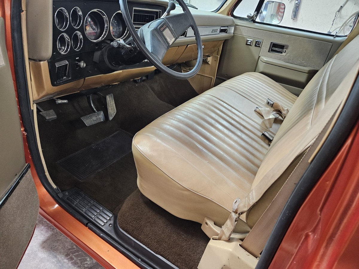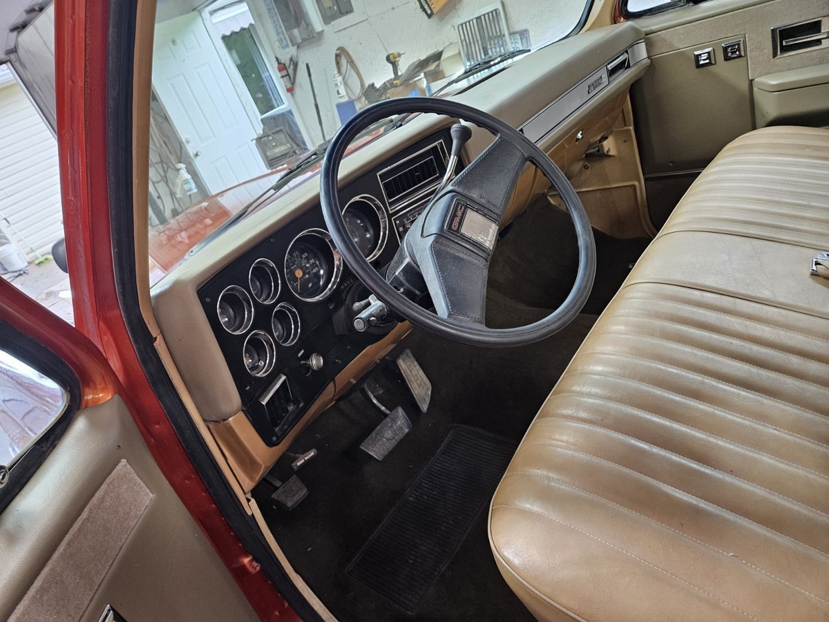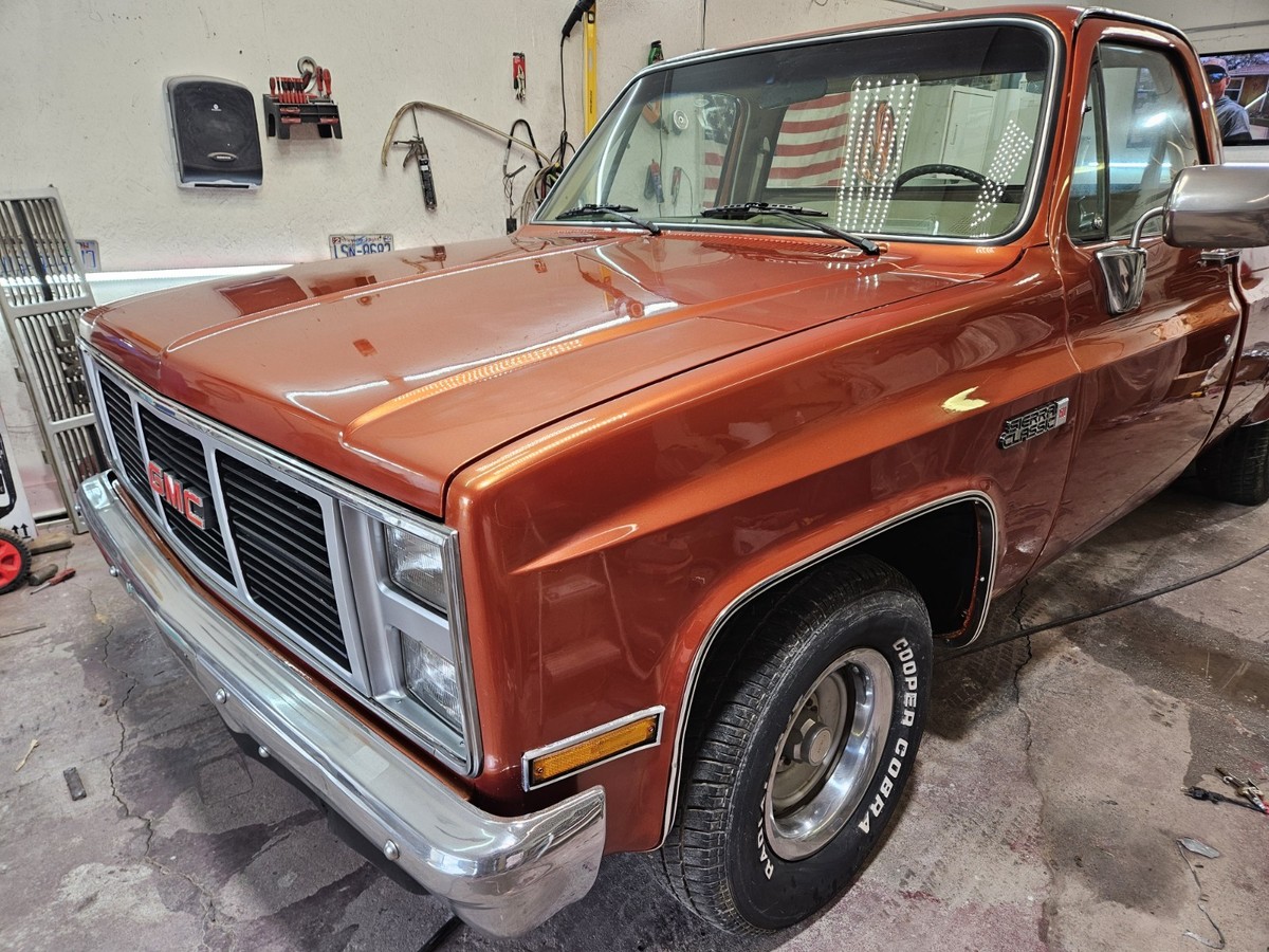 The 1986 GMC 1/2 Ton Pickup is a classic vehicle with a tan interior and orange exterior, featuring a cab and chassis body type. With automatic transmission and gas mileage, this GMC model has a clean vehicle title and 2 doors for easy access. Low mileage of 79,000 makes this pickup a reliable option for those seeking a vintage but well-maintained vehicle.Has lots of new parts paint .Ac