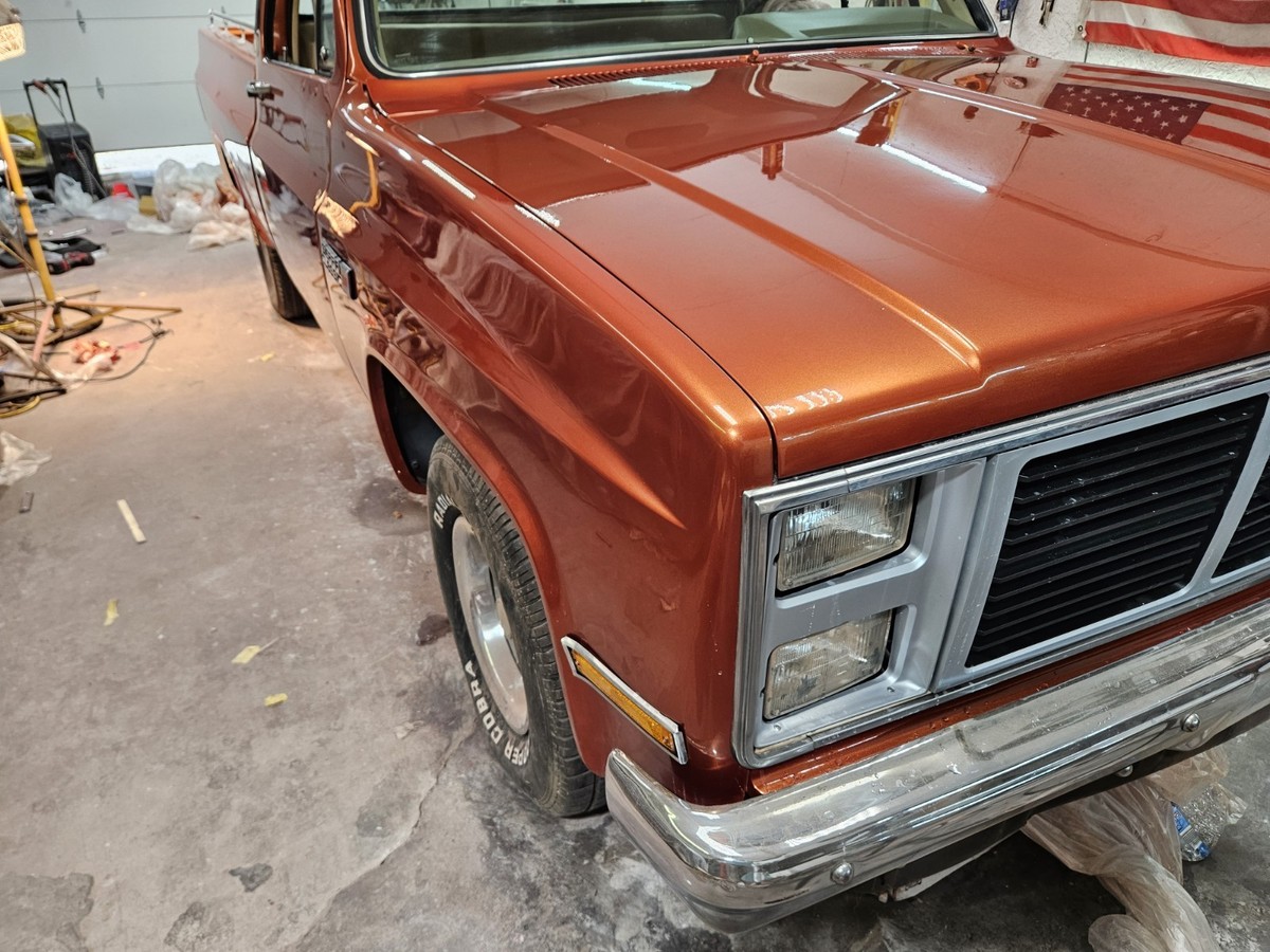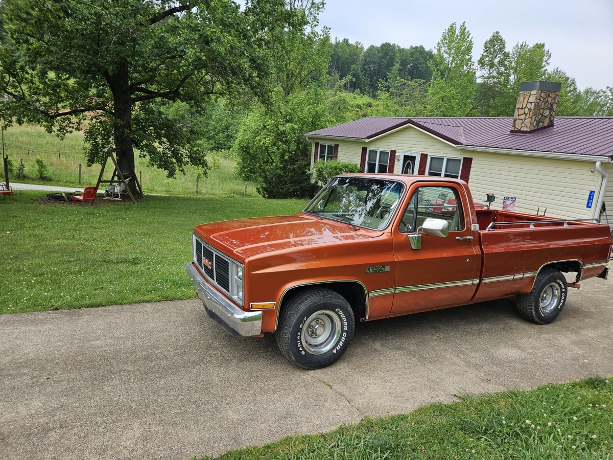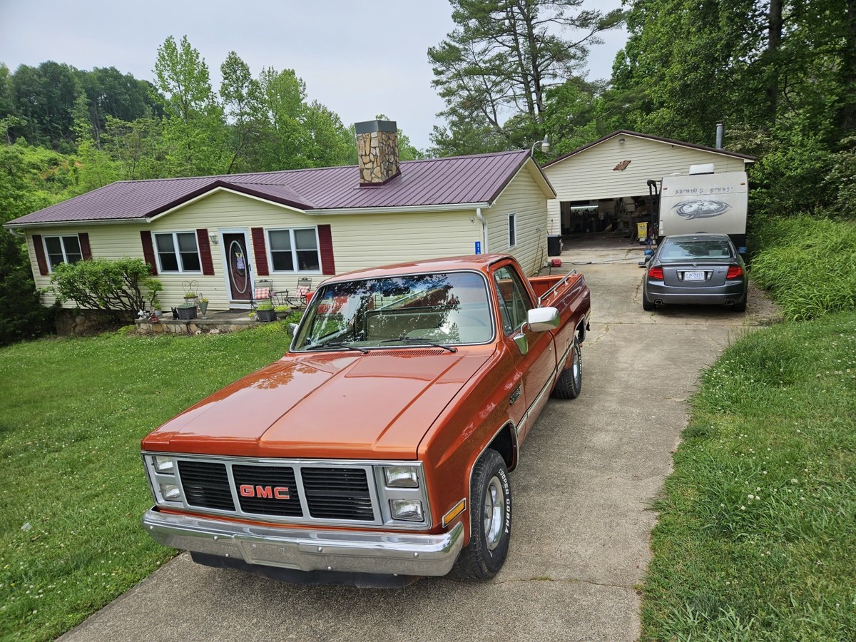The 1986 GMC 1/2 Ton Pickup is a classic vehicle with a tan interior and orange exterior, featuring a cab and chassis body type. With automatic transmission and gas mileage, this GMC model has a clean vehicle title and 2 doors for easy access. Low mileage of 79,000 makes this pickup a reliable option for those seeking a vintage but well-maintained vehicle.Has lots of new parts paint .Ac