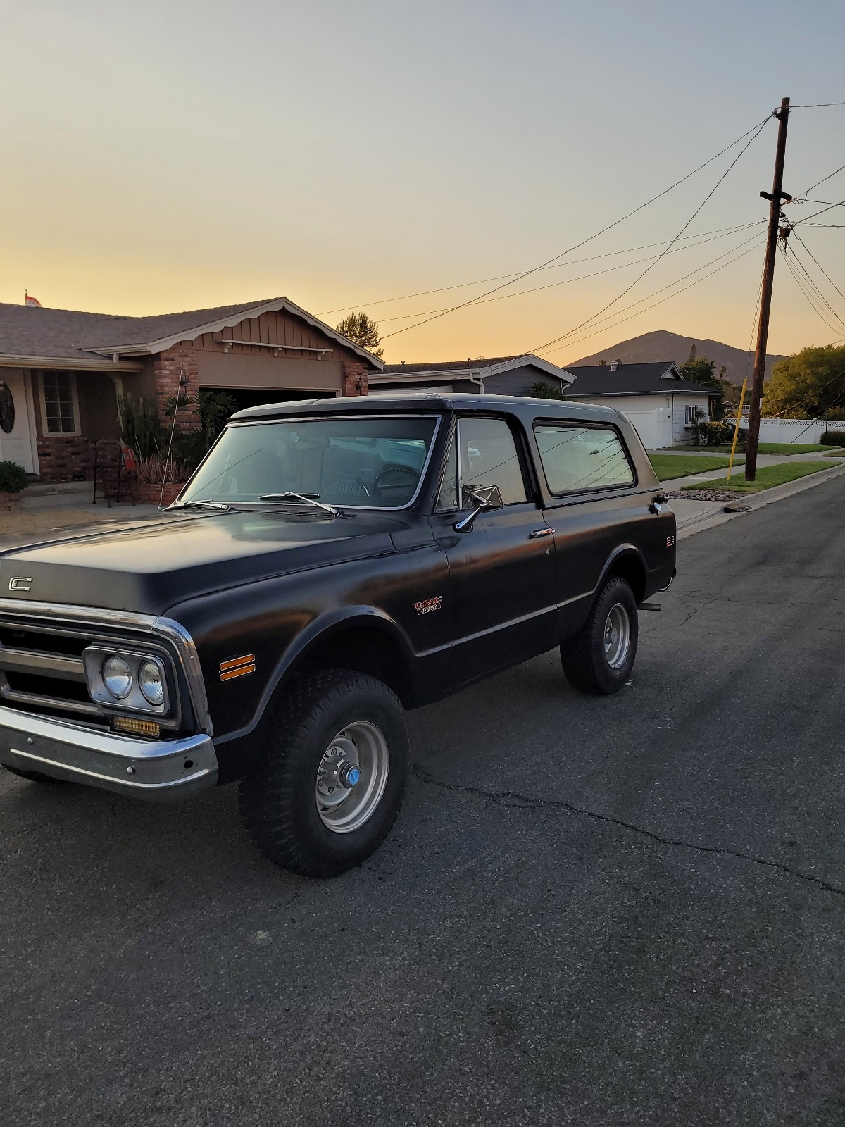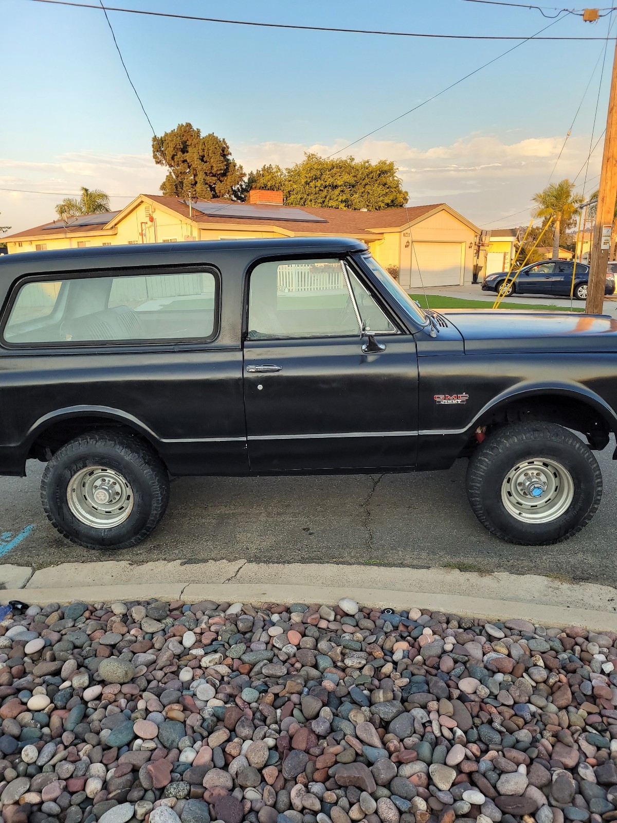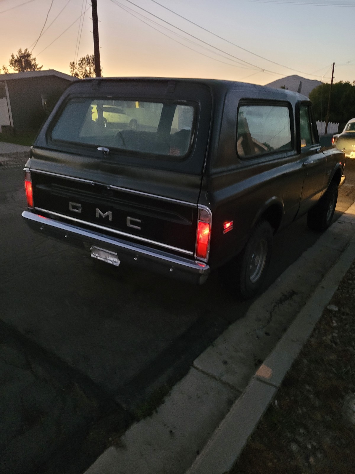 This is a 1972 GMC JIMMY We inherited the truck 3+ years ago. Drove it home approx. 150 miles with no overheating. NOT regulary driven.Solid truck with no cancer. Small area of rust near tailgate.Top looks to have a couple of patches but no leaks. Hatch nas a crack near hinge. A/C cab but missing compressor. No center console. Originaly Orange but painted black in the late 90's. Some cracks in the paint but still driver quality. Original bucket seats but need to be redone. CST Trim per the attached SPID. Not a SHOW truck but good driver quality. Tires show some dry rot. All glass is good and original. Manual choke and carb sticks. Not regularly driven and stalls sometimes while idling. I tried to be as thorough as possible. Drive as is or take it to the next level. Clean signed title. Please ask questions before bidding (see pics). I reserve the right to end auction early. Bid to win. I'm open to offers but NO DREAMERS. I know what the truck is worth. Do your research and get permission if needed before bidding!!! SOLD AS-IS
