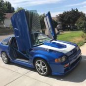 The design featuresa hood bulge and wide wheel arches. The body wears a factory correct (B-33M Sonic Blue) finish and Turbo II door graphics on both doors.