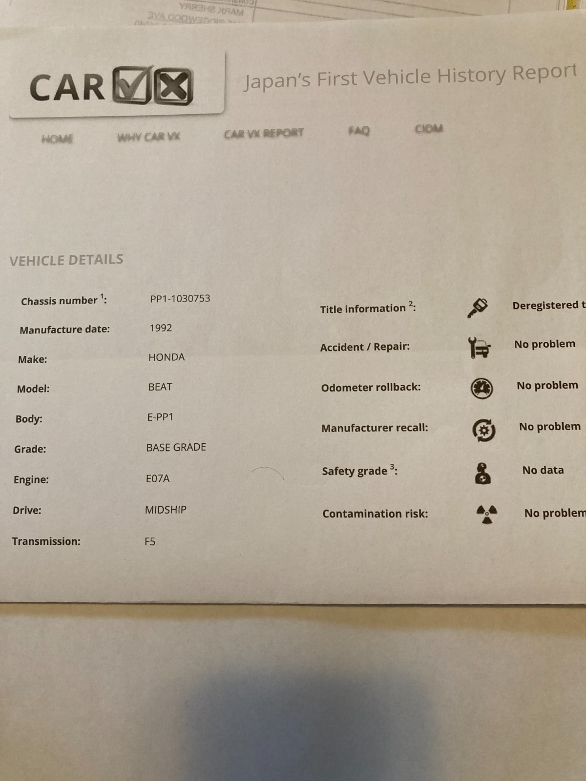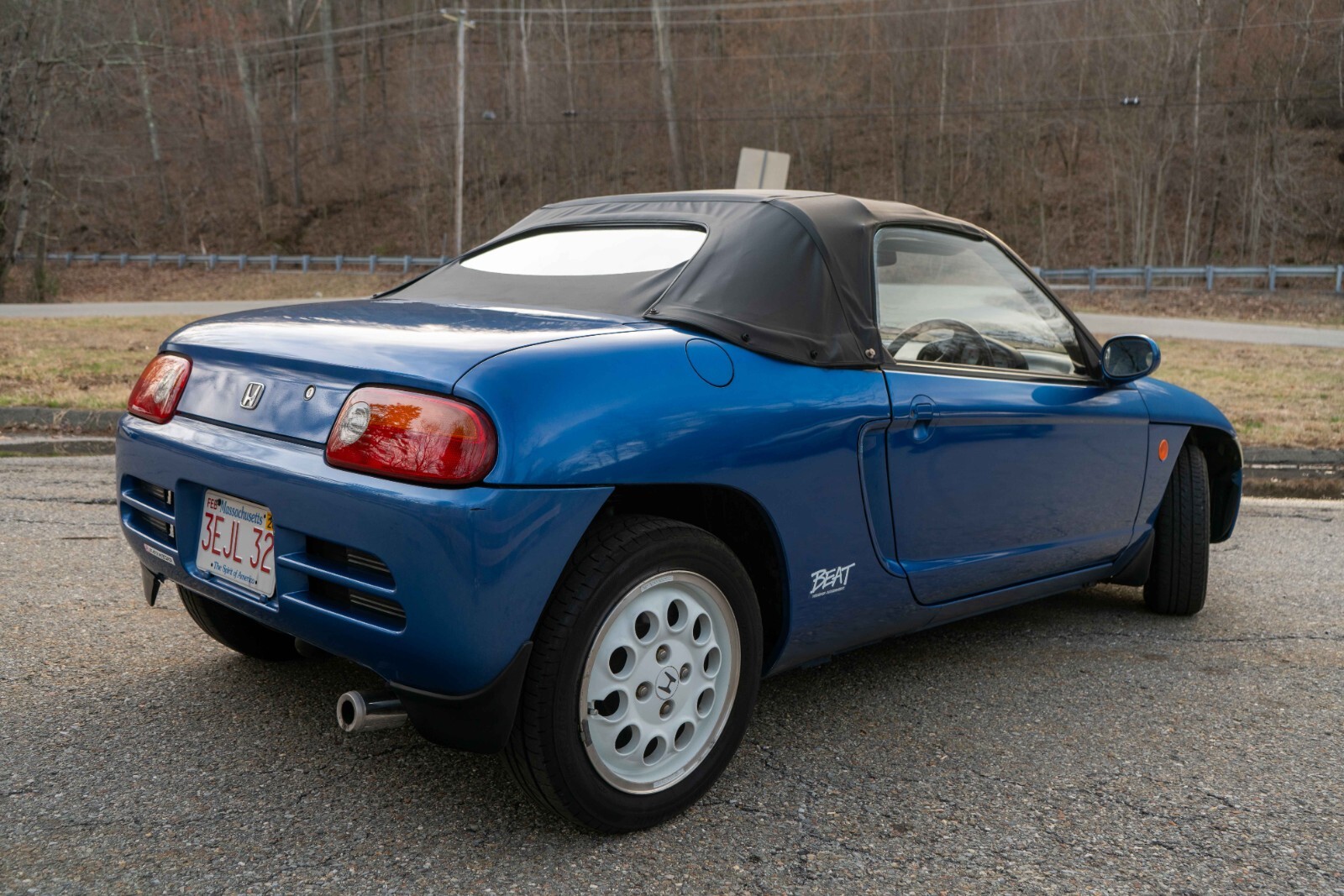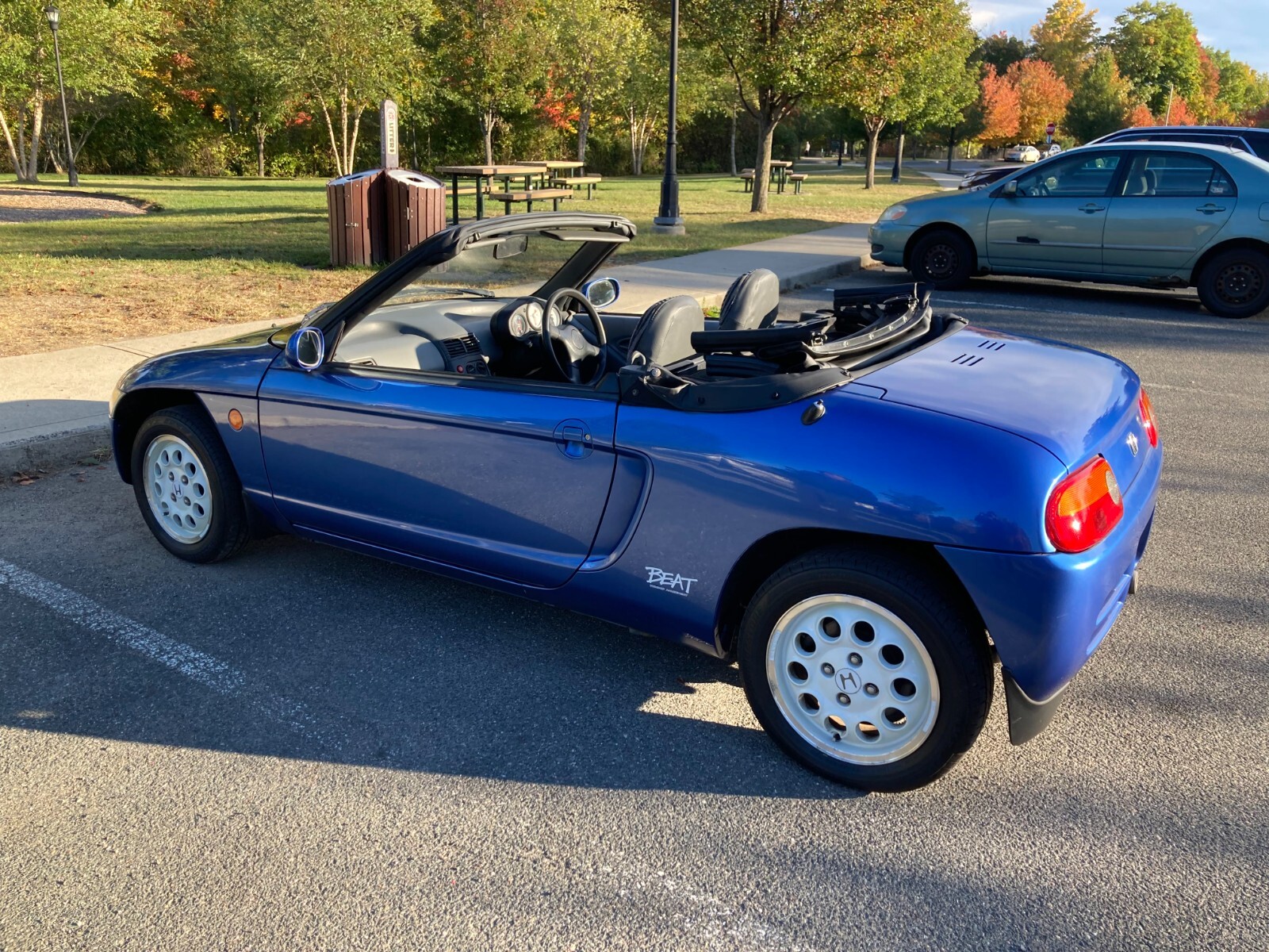 This car is so much fun it should be illegal! Do you want a car that you can get in and drive without having to think of fixing anything? This is a super-reliable Honda, and we have done all possible preventative maintenance (even including a new timing belt). It's in superb condition with absolutely no mechanical issues. It runs like a charm and handles incredibly well. The steering is so precise it will amaze you. Turn the key and it always starts up immediately- even in cold weather. This Honda Beat is a two-seater convertible roadster with a rear mid-engine, rear-wheel-drive layout. The Beat has truly been a hidden gem to US driving enthusiasts, as it was never sold in the U.S. market. It was the final model approved by company founder Soichiro Honda before his death in 1992, and some enthusiasts praise it as one of the brand's purest examples of driving enjoyment. The design of the car originated from Pininfarina(Ferrari designers), who then sold the design plan to Honda. It's mid-engine design and weight distribution gives it great handling capabilities. You’ll be surprised that its handling can rival many much more expensive sports cars. It truly is a blast to drive it. And this car is one of the best examples of a Honda Beat you can find anywhere in the US!This car was legally imported into the USA from Japan in March 2024 by my son and I. It now has a clean Massachusetts Title and can be registered in most every state (FYI-we'll also include original import paperwork). The Beat has a mid-mounted engine, and a head-turning design. If you want a truly fun car to drive- with the top down or up- this car is it! One of the most fun things about this car is that you can put the convertible top down (or up) in about a minute! The car is in superb condition mechanically, has a brand new top, and has all regular maintenance done as well as lots of preventive maintenance--so you can get to driving without any worries! This car looks so attractive and unique you will defintiely get attention everywhere you go! And this beauty has so much life left! -with just 40,800 miles (65,700 km) on it! Its mileage and clean accident history is Verified by the Japanese equivalent of CARFAX, the CARVX Report (see photos.) The interior is very unique as well and comes with the super cool OEM Beat Zebra seats as well as Zebra floor mats which are also in great condition. And also important to note that this Beat has no rust issues at all! It handles like a true sports car and is an absolute blast to drive, and the 5-speed manual transmission shifts easily and is fun to work with. And gas mileage averages ~40 mpg.Everything works in this car! It even has cold A/C! It has a 656cc 3-cylinder engine. Honda included the MTREC (Multi Throttle Responsive Engine Control) system, with individual throttle bodies for each of the three cylinders, to produce 64 PS (63 bhp) at 8,100 rpm with a top speed of 135 km/h (84 mph). It cruises smooth and easily on the highway at 65-70 mph. The 4 wheel disc brakes are in excellent condition. It has all preventive and regular maintenance just done. Recent Maintenance & New Parts Include: Timing Belt + Tensioner + Idler Pulley, Waterpump, New Robbins Convertible Top w/ glass window and new windshield/top seals, new Serpentine Belt, Cam/Crank Seals, Air Filter, Distributor Cap + Rotor, tuneup w/ new spark plugs, 5w30 Oil Change + Filter, New Wiper Blades, AC System converted to R134. So, you can get to driving without any worries! Compression Test Results: All Within Specs: 180-190psiAnd a big plus in any convertible is that it has a brand new top (with a glass window- not a plastic one that easily clouds up). It was also installed with all brand new large rubber moldings that the top seals with around the windshield and rear window. And this car has no rust issues at all. The undercarriage looks great (see photos), with only a few traces of just very light surface rust. The paint is in very good condition and the color is very rare (only 500 were made). It has a few imperfections, which are shown in the photos. Wheels: Head turning white alloy Honda wheelsTires: Bridgestone Playz-PX-C 155/65 R13s in the front, and 165/60 R14s in the rear. Tires are recent, in excellent condition, with well over half their tread life remaining.The interior is in excellent condition and very unique as well. It comes with the super cool OEM Beat Zebra seats as well as Zebra floor mats which are also in great condition. Interior Amenities: Brand new MGR450 BOSS Audio Bluetooth Mini Stereo Head unit, Blaupunkt GTX630 3-way speakers, Redwolf wiring harness adapter, 3D printed radio adapter. You might be able to find a cheaper price on a Honda Beat somewhere else- but definitely not one that can give you this sense of security and peace of mind that you are getting a car that you will not have to worry about. This is a chance to get a super fun, turnkey convertible that will turn heads everywhere you go.
