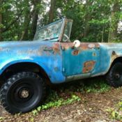Eagle Alloys 15″ wheels are wrapped in 33″ x 12.5″ Thunderer Trac Grip mud-terrain tires, and the front axle is equipped with manually locking hubs. A power-steering system has been added, and the steering box was reportedly upgraded with a larger unit from a Scout II.