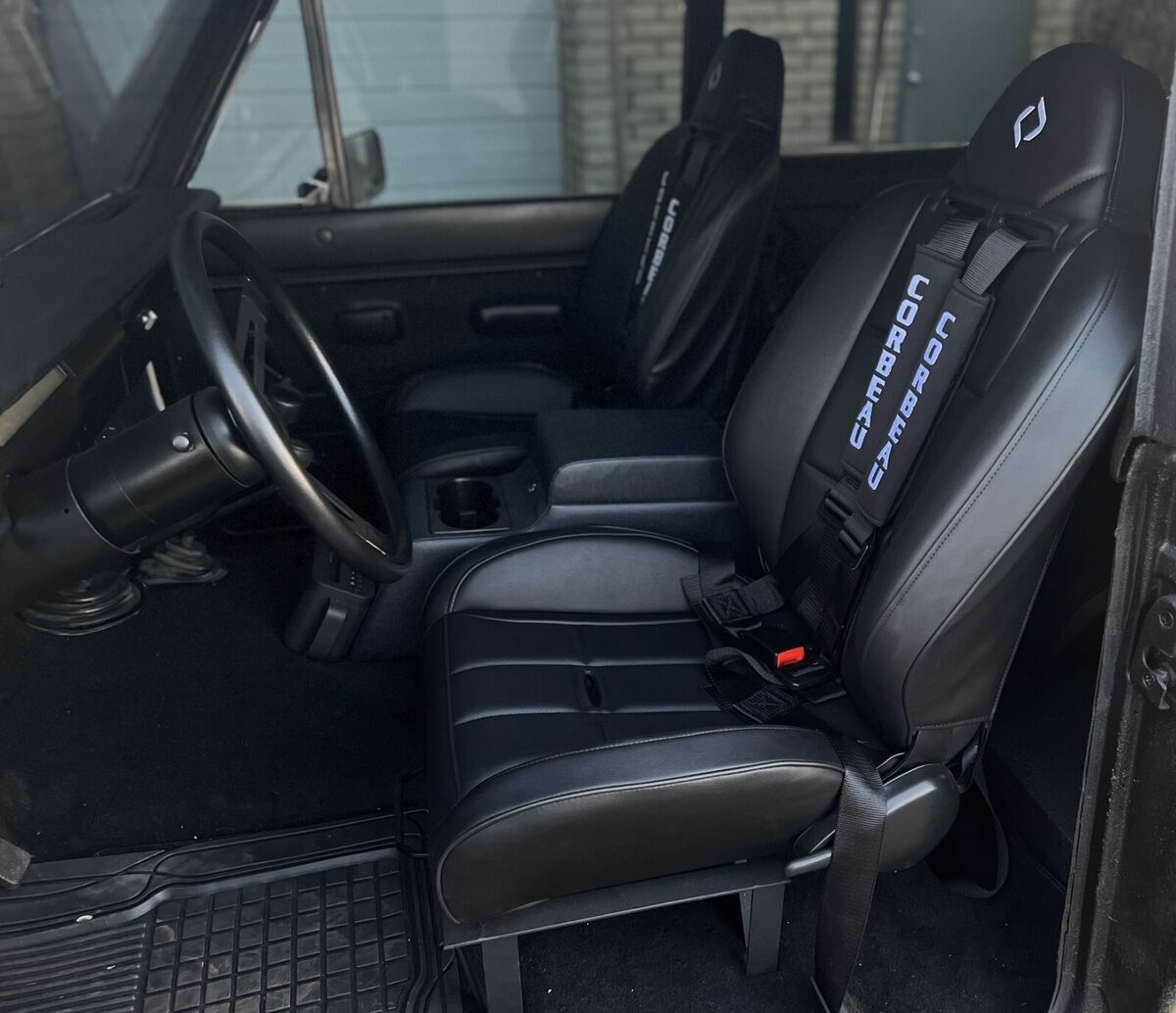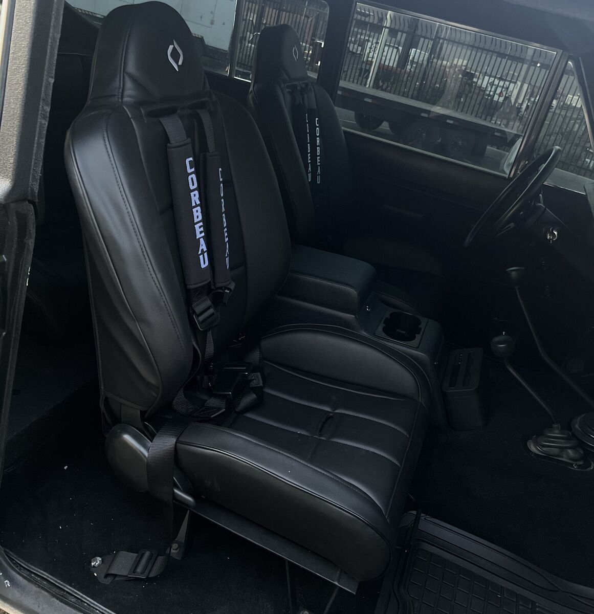 - Corbeau reclining front bucket seats with sliders and 4-point harnesses, along with a Corbeau rear bench seat.