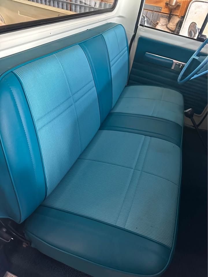 Interior: New interior with era-correct bench seat material sourced for authenticity