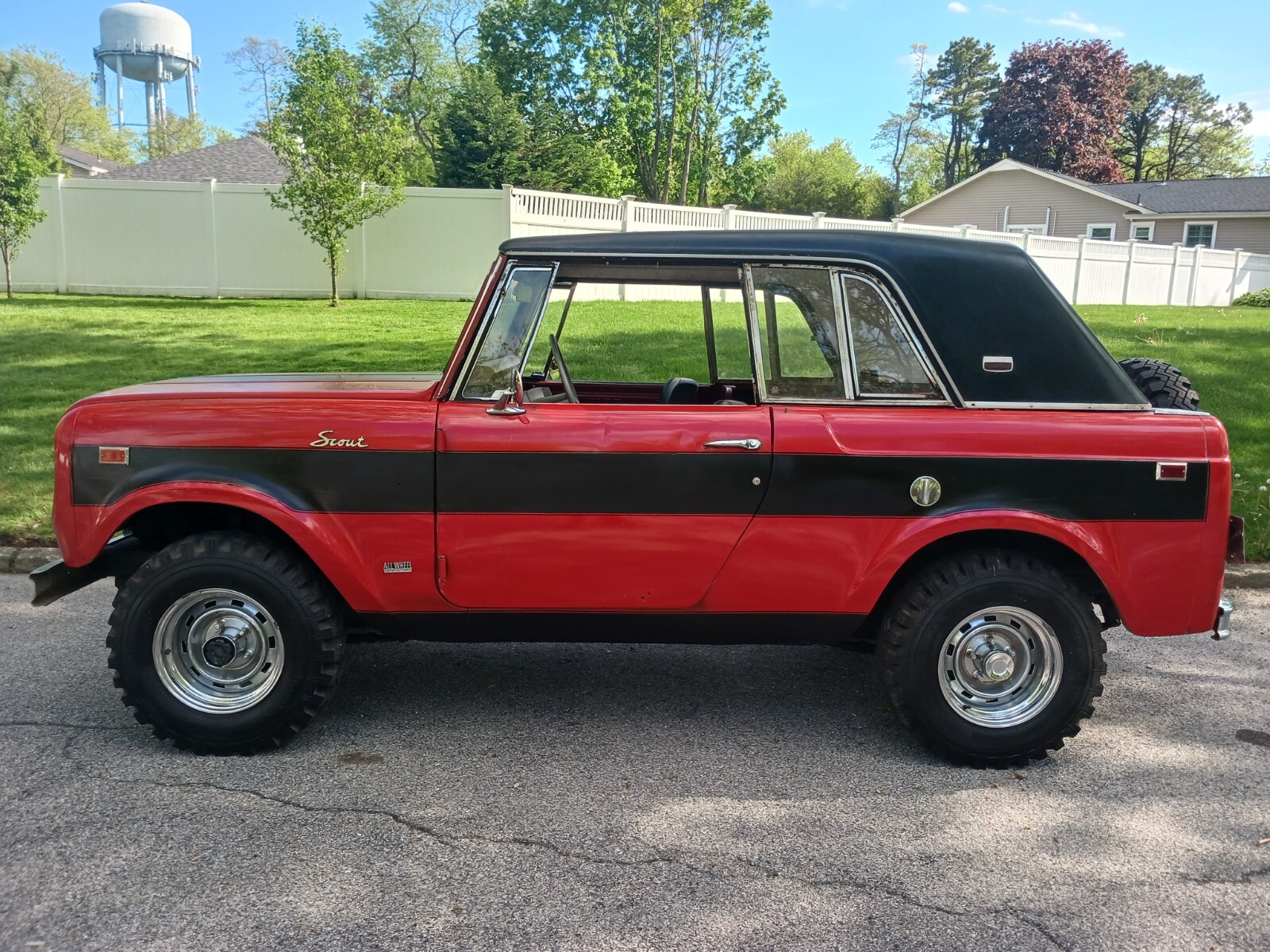 THIS IS TRULY A UNICORN. A 1967 INTERNATIONAL SCOUT 800A WITH FACTORY 266 V8 4 SPEED AND A REAL SPORT TOP. RUNS AND DRIVES GREAT. GET IN AND DRIVE IT WITH ONLY 59K MILES ON ODOMETER.Please LEAVE A PHONE NUMBER when bidding or messaging (yes it's allowed for cars) to prevent fake bidders and time wasters.Full Youtube Walkaround, startup and driving video here:https://www.youtube.com/watch?v=jwCJyUHOLkw&t=10sThis Scout has been a southern truck most of its life. Previous owner was a collector and has maintained and serviced it well. Kept indoors when not used. Mainly used for going to the store in town, parades, car shows and cruise nights.Body is fairly clean as you can see. Not perfect, so does have some character. Paint is older and faded on hood, with a few pinholes on a few body panels like right top fender, hood, and left door. I added the stripes to break it up a little bit. Bottom section where the black is has some filler. Had paint wetsanded and buffed and it's basically a 20-30 footer. Doors open and close good. Presentable enough to get thumbs up on the street, but should eventually be redone.Under the hood lies the original 266 V8 that starts right up and runs great. Well serviced and maintained as mentioned. Start it, warm it up for a minute or two with manual choke and off you go anywhere you want. Steering is good, some normal play in the wheel which is typical for these older scouts. Brakes grab well and stop fine. Very reliable and it's a 4 SPEED which is pretty unusual for an 800.Interior has had BRAND NEW Besttop seats installed front and back, while the rest is pretty much original. I added the center console from a Scout II to give it a nice touch.Underside is typical for a scout. Previous owner did have the floors replaced with factory panels, and they did a good job, it's solid as a rock, but they left the old sections of floors underneath to be cut out. Frame is EXCELLENT with no issues. Inner rockers need some work, again typical on these and a few of the smaller braces need attention. Nothing that needs to be done right away, but if you want a nice truck it will require some work down the line.Overall it's a GREAT TRUCK that you can get in and drive, and you just DO NOT SEE Sport Tops around anymore, and add to that it's a factory V8 one, and it's virtually the HOLY GRAIL of early Scouts.