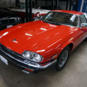 The car underwent a complete cosmetic restoration including a repaint in its original factory color of Carmen red, and all new interior (seats, carpet & some trim) in 1996-1997. Since the restoration, the Jaguar has been used minimally and primarily by its elderly owner to display at local British shows. The car looks good and drives well. It is being offered for sale by the owner’s estate.
