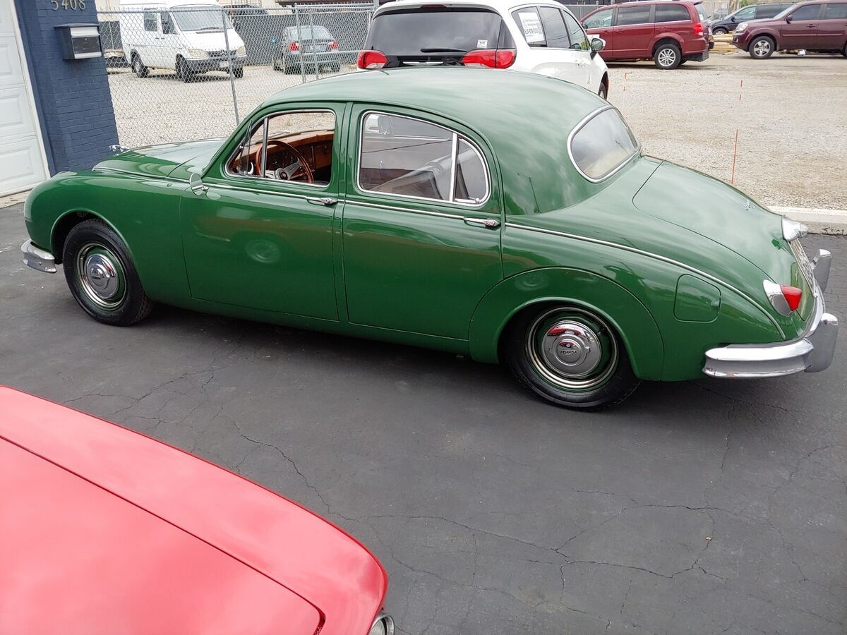 Originally a 3.4 liter automatic Mk 1 that was up graded to a 3.8 liter XK150 engine with a 4-speed Moss gearbox with an electronic overdrive. Car runs exceptionally well. Has four wheel disc brakes. It has been repainted several years ago and interior has been refinished in vinyl on the seats. It has real good interior woodwork and smells like an old Jag should. A wonderful Italian-made Nardi wood-rimmed steering wheel has been installed. Brand new Dutch made Vredestein Sprint Classic tires have been installed along with new Woodhead front shocks and sway bar bushings sourced from a Jag parts specialist. Car runs and drives great. Starts right up with no issues. They're larger displacement 3.8 L really makes a difference. It is very torquey. SU carburetors work great. Minimal rust on the underside as you can see in the pictures. Lights, windshield wipers, gauges all work. Car does not overheat or do anything it shouldn't. Gearbox is a non-synchromesh 4 speed with shifts great...you just have to relearn how to work a nonsyncromesh gearbox. Overdrive switch works great. You can cruise on the freeway and keep up with traffic easily at low engine revs. A stunning car in a wonderful shade of green. The rear trunk lid has had the "Automatic" badge removed...you can see in the pictures. Comes with a multitude of factory service manuals paperwork and brochures.