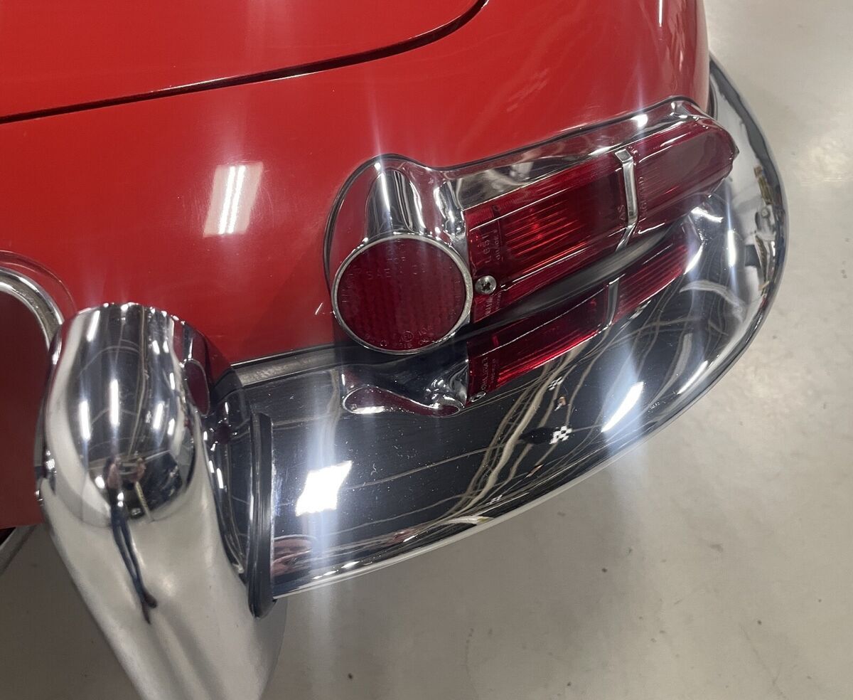 Items also included are the Original Jack with leather pouch, Factory issued tool kit and wheel center knock off mallet, Jaguar official care and shop manual . Original wire wheel spare in the boot with the factory original Dunlop tire that has never been used or on the ground.
