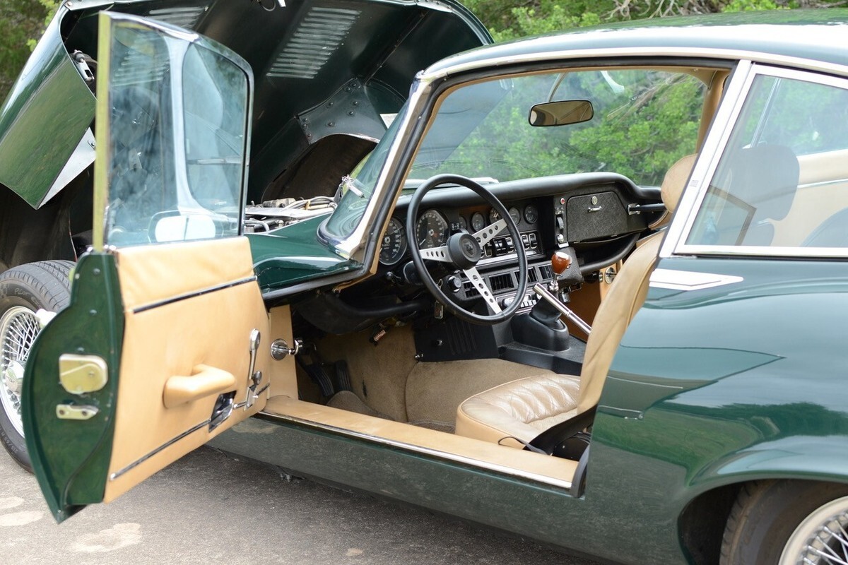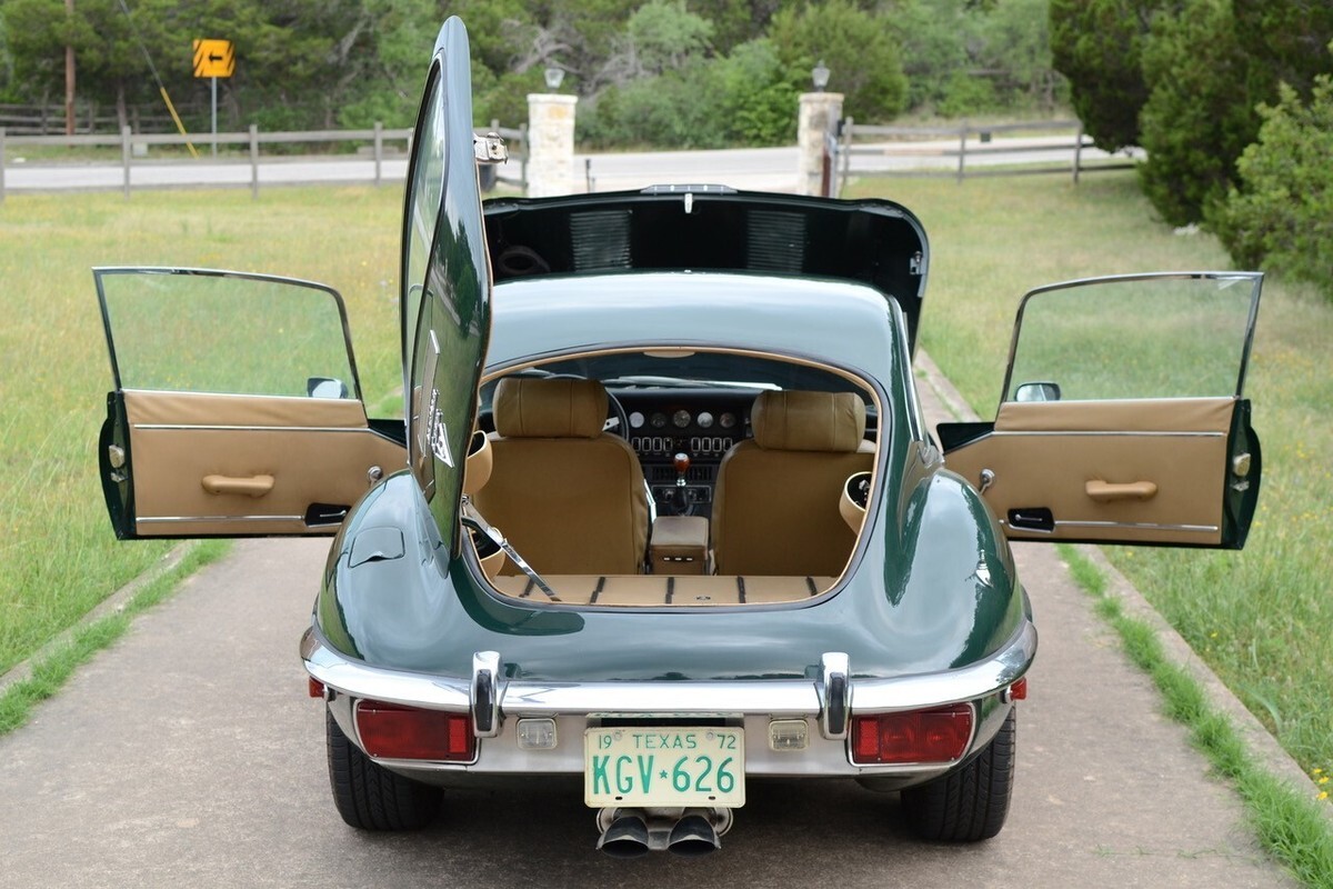 1972 Jaguar E-Type(XKE) is incredible condition. V12, 4 Speed, factory A/C, AM/FM Radio many other options. Every item works, even the clock, excellent example of a very desirable E-Type Have all the factory paper work including selling dealer warranty book, service receipts. Jaguar Certification Certificate proving matching numbers. Paint, body interior, tires, glass in excellent Condition. This is a ready to drive any where Jaguar with presumed low mileage. Car located in Austin, TX 78737 for info and set time for inspection. Personal inspection is preferred. Cash only upon pickup or to hold for pick up. Bank Wire transfer is good, buyer pays writing feescan sent more photos and video if needed. Call for more detail or for personal inspection. 512-431-3038