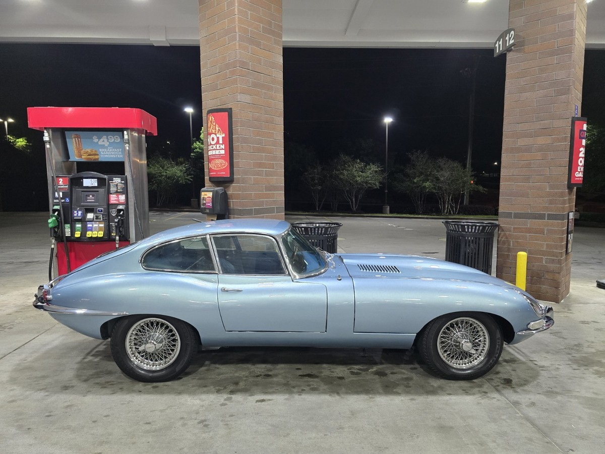 1968 JAGUAR ETYPE COUPE WITH GLASS COVERED HEADLIGHTSNew Beautuful Opalescent Silver Blue PaintGlass Headlight Covers RetrofittedRechromed BumpersFactory A/C blows from interior unit ( needs compressor)*68 IS THE FIRST YEAR OF DUAL RADIATOR FANS, RECLINING SEATS, AND FACTORY A/CNew Tires with 100 milesSeries 1 Wheels and SpinnersNew Floors and RockersRebuilt Engine with 1,000 milesNew Brake Master Cylinder New Brake BoosterAnsa Exhaust with Quad TipsPerfectly Aligned and BalancedAll gauges and switches work including the windshield washers and clock!No rustLooks Great and Runs Great$68kPayment is by Bank Wire Only