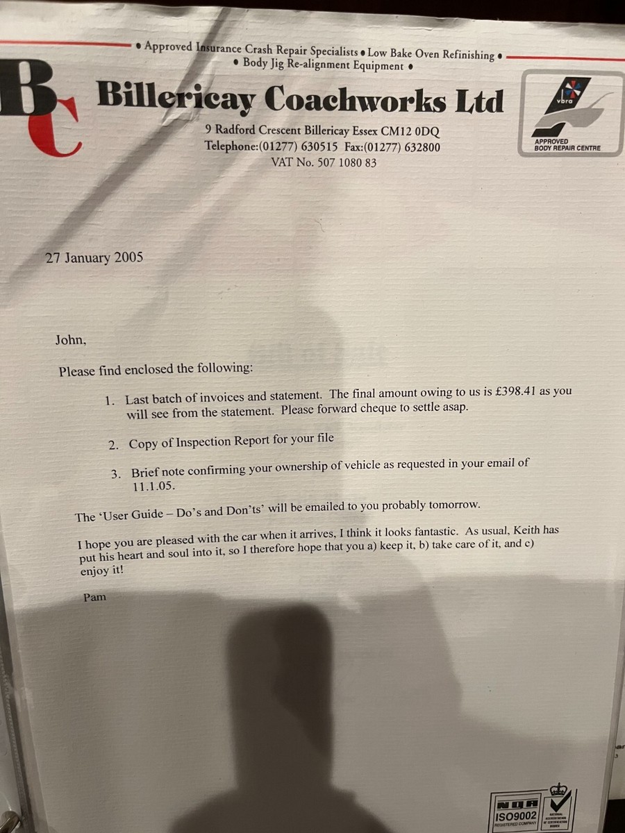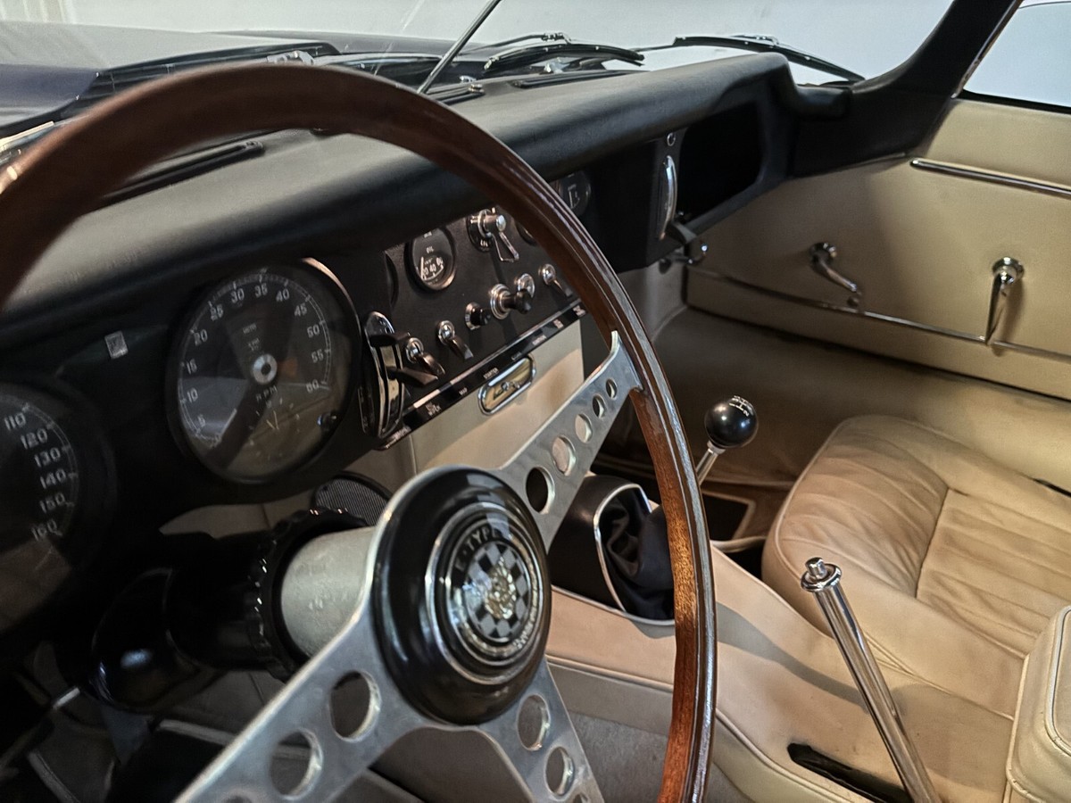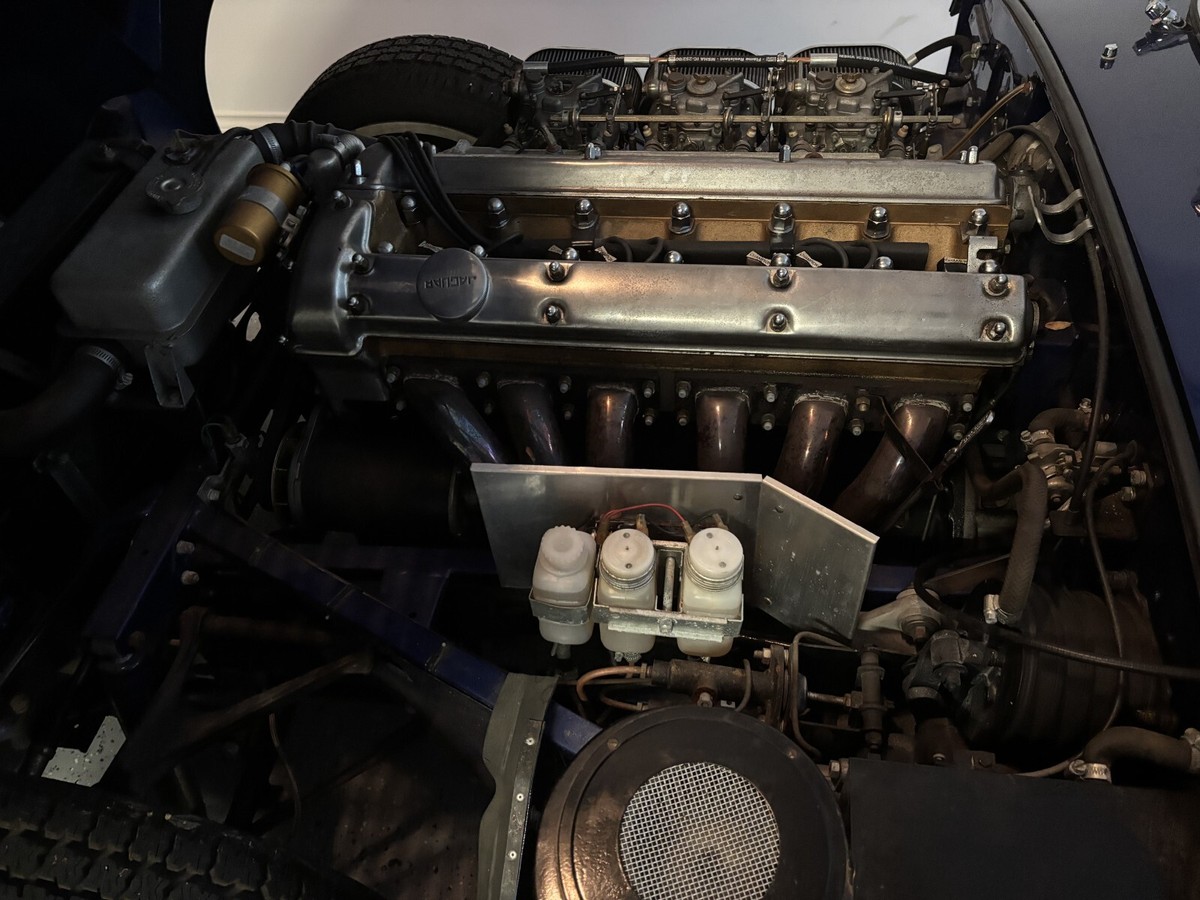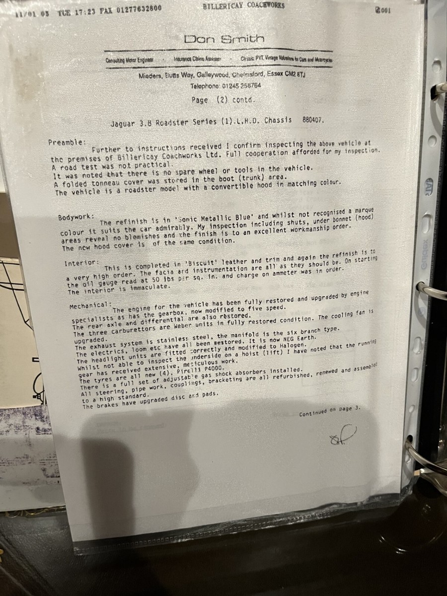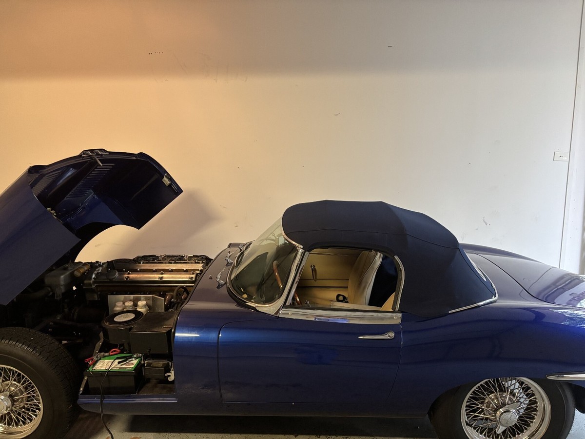 This is an excellent car that underwent a complete restoration on this E type roadster at Billericay Coachworks LTD in Essex, UK 21 years ago. This was a complete nuts and bolts rotisserie restoration that left no expenses spared and included gear box upgrade. Billericay Coachworks LTD in Essex is extremely well-known Jaguar site. It is a matching numbers vehicle. All restorations record I have in a large folder documenting original vehicle before it was sent to UK for restoration. This vehicle runs well, no major mechanical faults but it does remain a 21-year restoration. It is blue in color but originally was red.