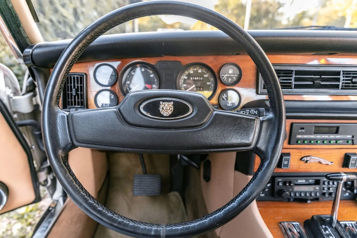 It's a special classic car, the former baby of a wealthy man with such a passion for Jaguars, he had a small fleet of them, fully restoring each one to the tune of $25k to $50k. (We don't know which amount was spent on this particular dreamboat.) It is freaky perfect, with even the underside getting raves. (It's supposed to have a hairline crack in wood dash, but we didn't see it.) It just passed inspection. Has roughly 80,000 miles with a few more probably added on. Fill the fuel tank from either side, so no memory worries about where to pull in. ;;; Cold air, beautiful leather seats, handsome wood dash. It's old school with a design that takes your breath away. Official Jaguar color is Cirrus Grey, but color is very creamy, which we mention because it looks different in different light in the photos.