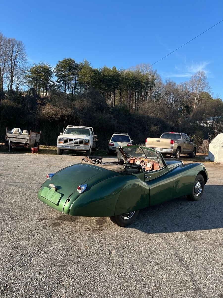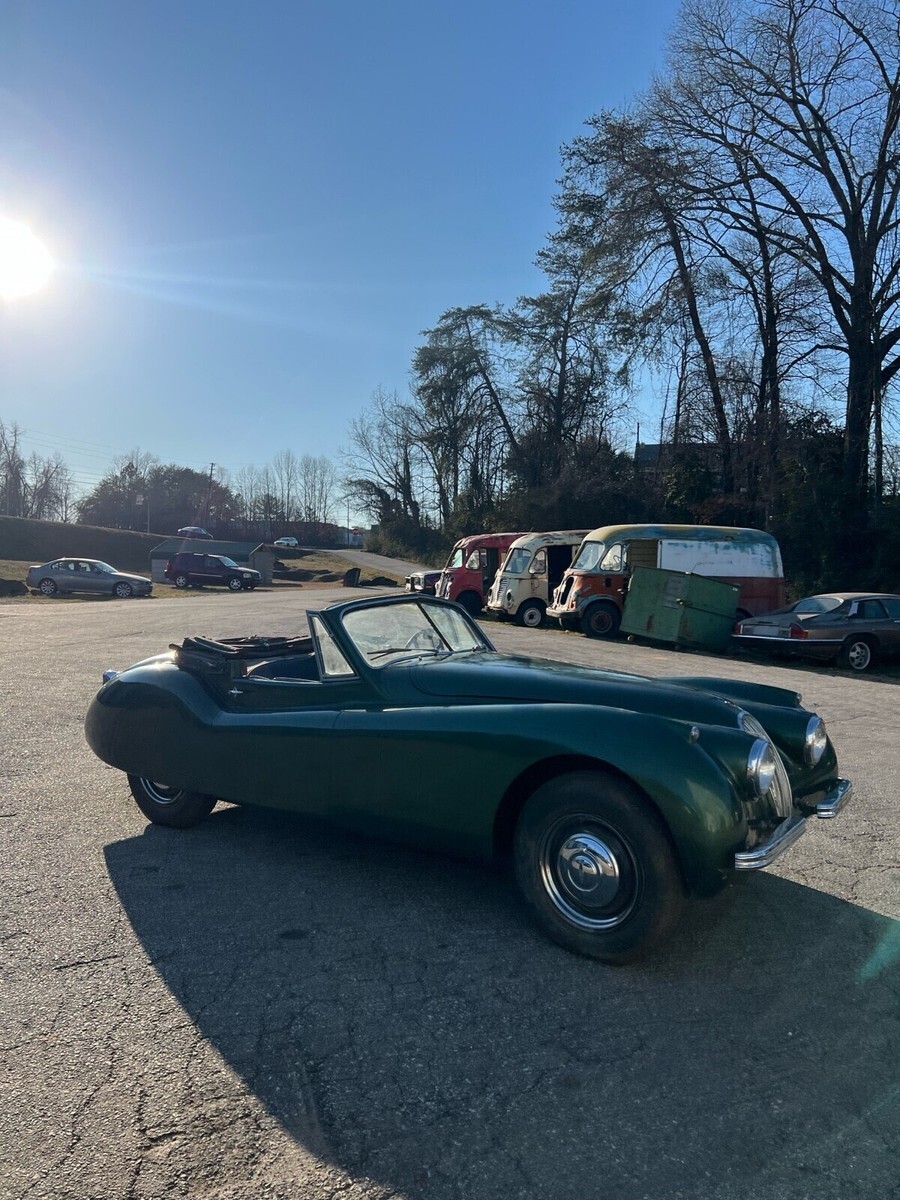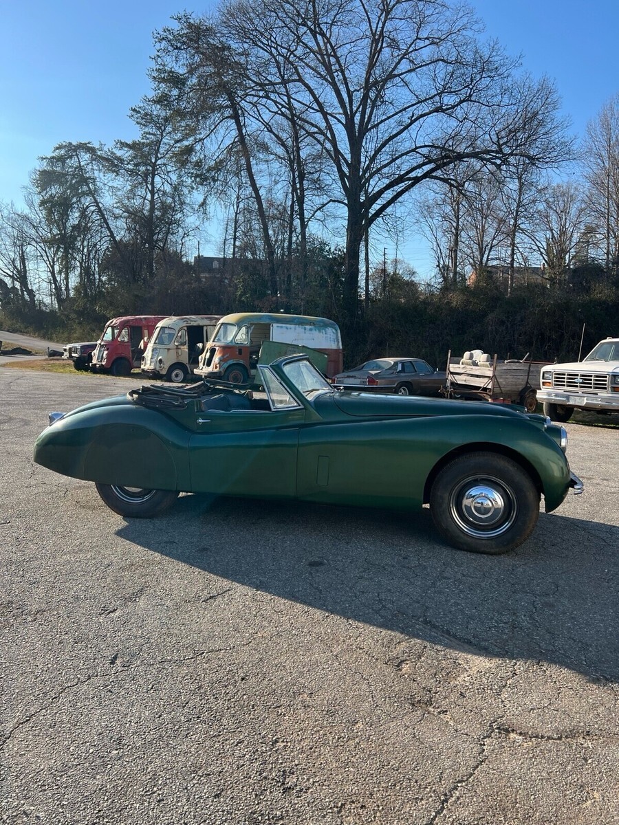 Up for sale is my 1953 Jaguar xk120 Drophead Coupe. 100% rust free and straight body. This car spent most of its life in Oklahoma. At some point in its history the engine was swapped for a slightly larger 4.2l jaguar engine. It was non running when I acquired the car several years ago. I have since went through the carburetors, the fuel system and the brakes in order to get it running and driving. It will drive around a parking lot quite well. I have only taken it on the road a couple of times. With new tires and some tuning of the carburators, it should be roadworthy. The headlights, horn and turn signals work. About half of the gauges work. It will need new top upholstery, the metal frame is in good shape. I am only selling because I reccently aquired an xk140. The 120 is an incredible car that needs a good home. Happy to answer any questions or take more pictures. Asking 35,000 OBO.