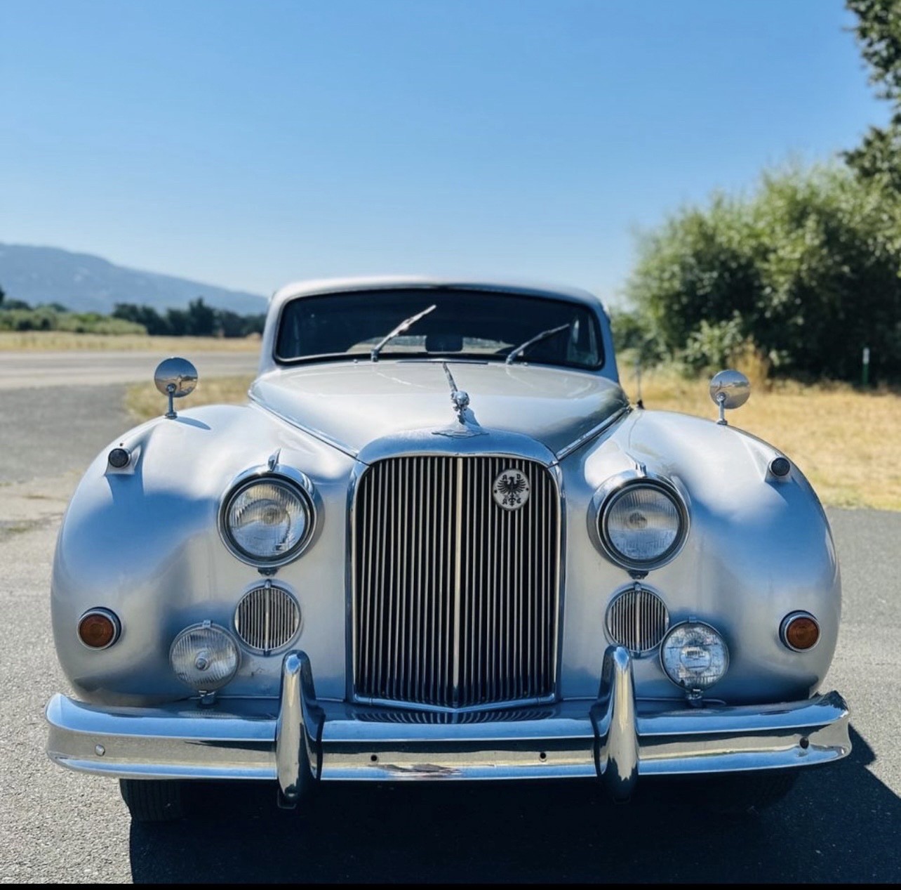 I acquired the vehicle in early 2024 from the estate of a person who had the car since 1994. Finished in silver and maroon over red leather upholstery, the Jaguar is equipped with a 3.8-liter inline-six and a four-speed manual transmission with overdrive as well as dual SU carburetors, a sunroof, driving lights, four-wheel disc brakes, rear-wheel spats, hubcaps, wood interior trim, and rear tray tables. The car will turn over and run with some starter carb but the SU carbs need a rebuild and all the brakes pads have been changed but still need to be bleed. This left-hand-drive Mk IX is now offered with a clean California title in my name.