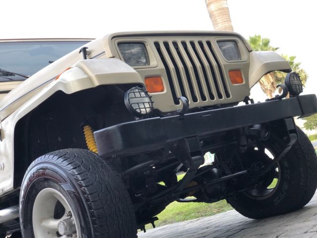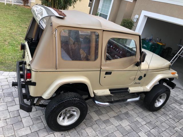 So you want to take the plunge and purchase a Jeep Wrangler to make your own JURASSIC PARK JEEP, there is only one right Jeep- The 1992 Sahara Edition in Sand Beige (Tan) low gloss color, 1992 was the ONLY year this color was available and it was only on the Sahara Package.In 1992 the roll cage was changed for one that was accurate to Jurassic Park, also in 1992 the Sahara package was updated to Green Interior that is present in the Jurassic Park Jeeps.Today is almost impossible find one since the biggest thing going against YJ Jeeps is RUST BODYand Rust Frame or Dents.Here is one survivorATTENTION COLLECTORS !!!FIRST YEAR OF SAHARA EDITIONPERFECT BODY AND COLORJURASSIC JEEPNO RESTORATIONEXCELLENT ORIGINAL CONDITION* Original Sand Beige (Tan) Original Color: Paint is ORIGINAL (22 yrs. old showing natural oxidation, some road chips) looks beautiful, shows originality of vehicle.*. Original Body RUST FREE, DENTS FREE.* Original Frame RUST FREE* Original Interior: Dashboard condition EXCELLENT(Original) Upholstery condition GOOD (Original) Floors Condition EXCELLENT Rust Free (Original)* Original 4.0 LitreHIGH OUTPUT 156.000 Miles EXCELLENT condition, always serviced.* Original Manual 5 speeds Transmission and Transfer case with ORIGINAL manufacturers plate. EXCELLENT ConditionOver 100 pics. and five videos available.Please NO- PAY PAL payments NO Scanners NO Unsolicited phone calls [email protected]THIS MAY BE THE LAST CHANCE TO GET THE JEEP OF YOUR DREAMS