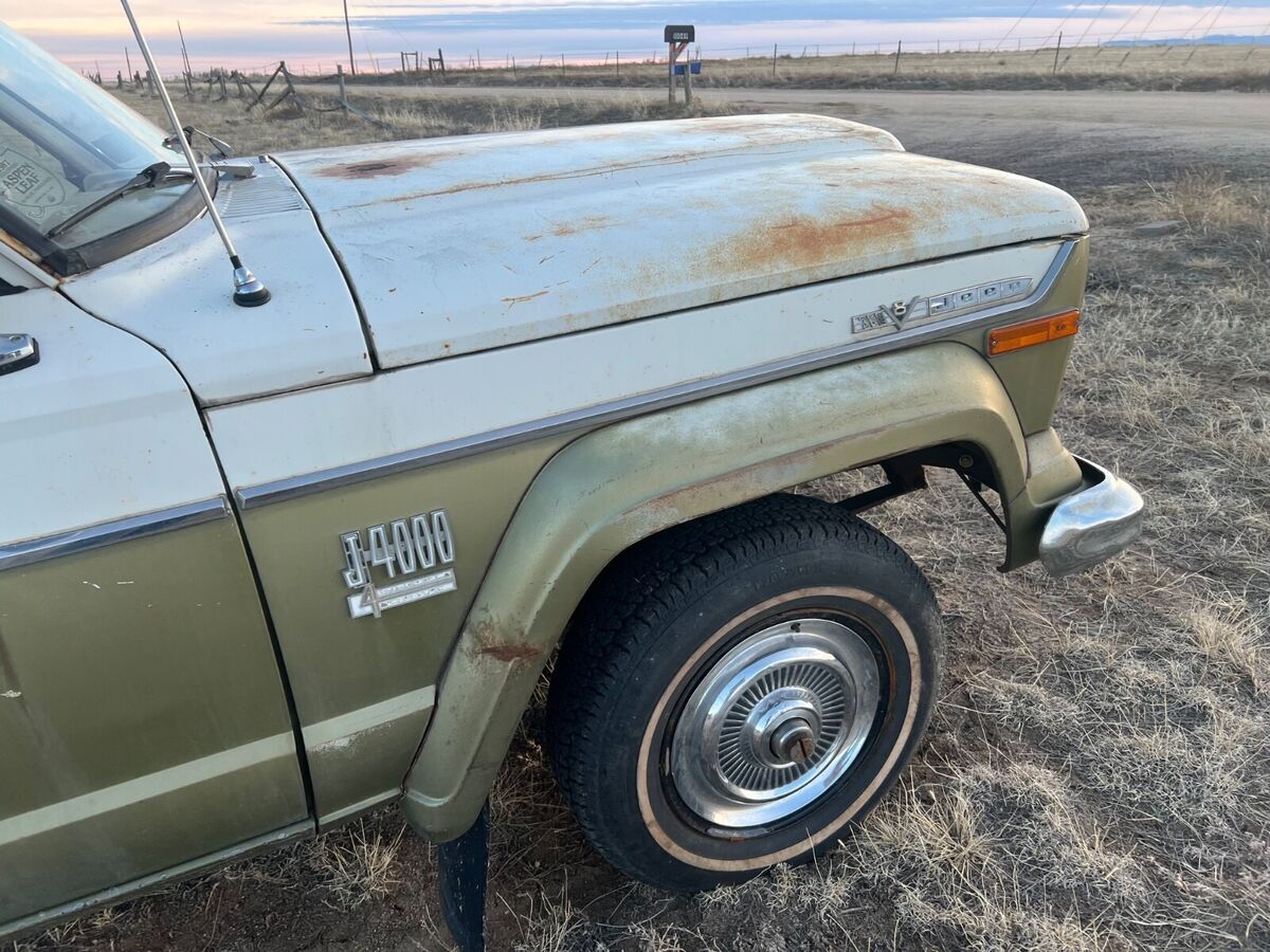 This beautifully original 1972 J4000 was purchased new by Author Holloway on 2-28-72 at Leo Payne Pontiac in Lakewood Colorado for $4623.80 minus $1409.57 for his 1958 Jeep wagon he traded in, he drove the truck until his passing in 1994 when the truck was parked.We recentlyacquired the truck from his family and freshened up the fuel system, fluids and battery.The 360 V8, starts easily and runs great, no leaks, smoke or strange noises 101k original babied miles.The 3 speed manual shifts like butter and the clutch is healthyThe super solid body still wears it’s original paint, very straight, beautiful patina and only rust through area on the left rear bed seam shown in the pictures, and as you can see in the tailgate hinge, it had a camper in the bed since new so the inside of the bed is excellentThe brakes work fineRuns and drives greatClean Colorado titleGood glass7I9-6I9-7523