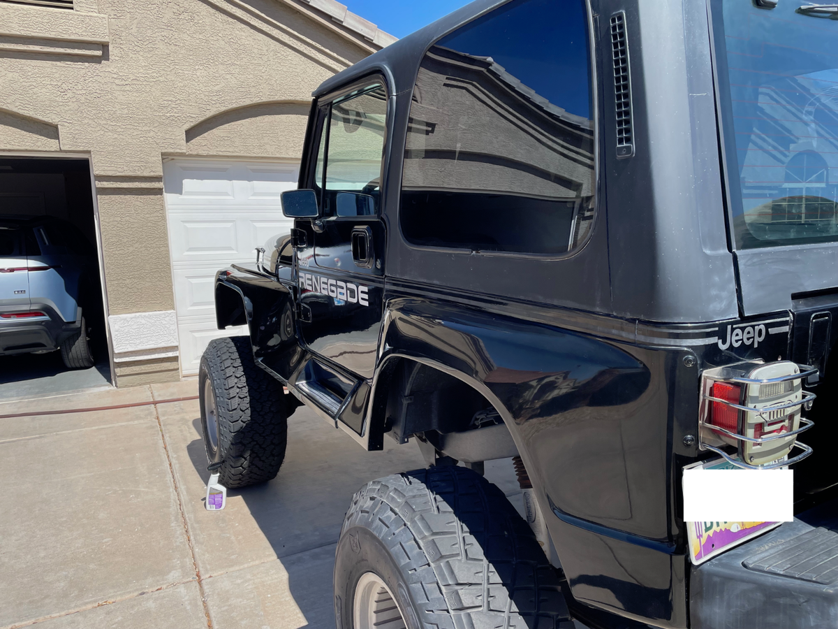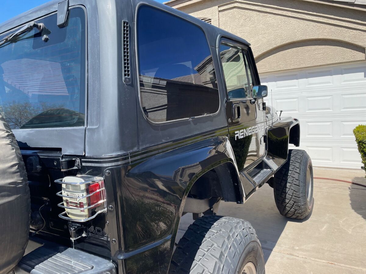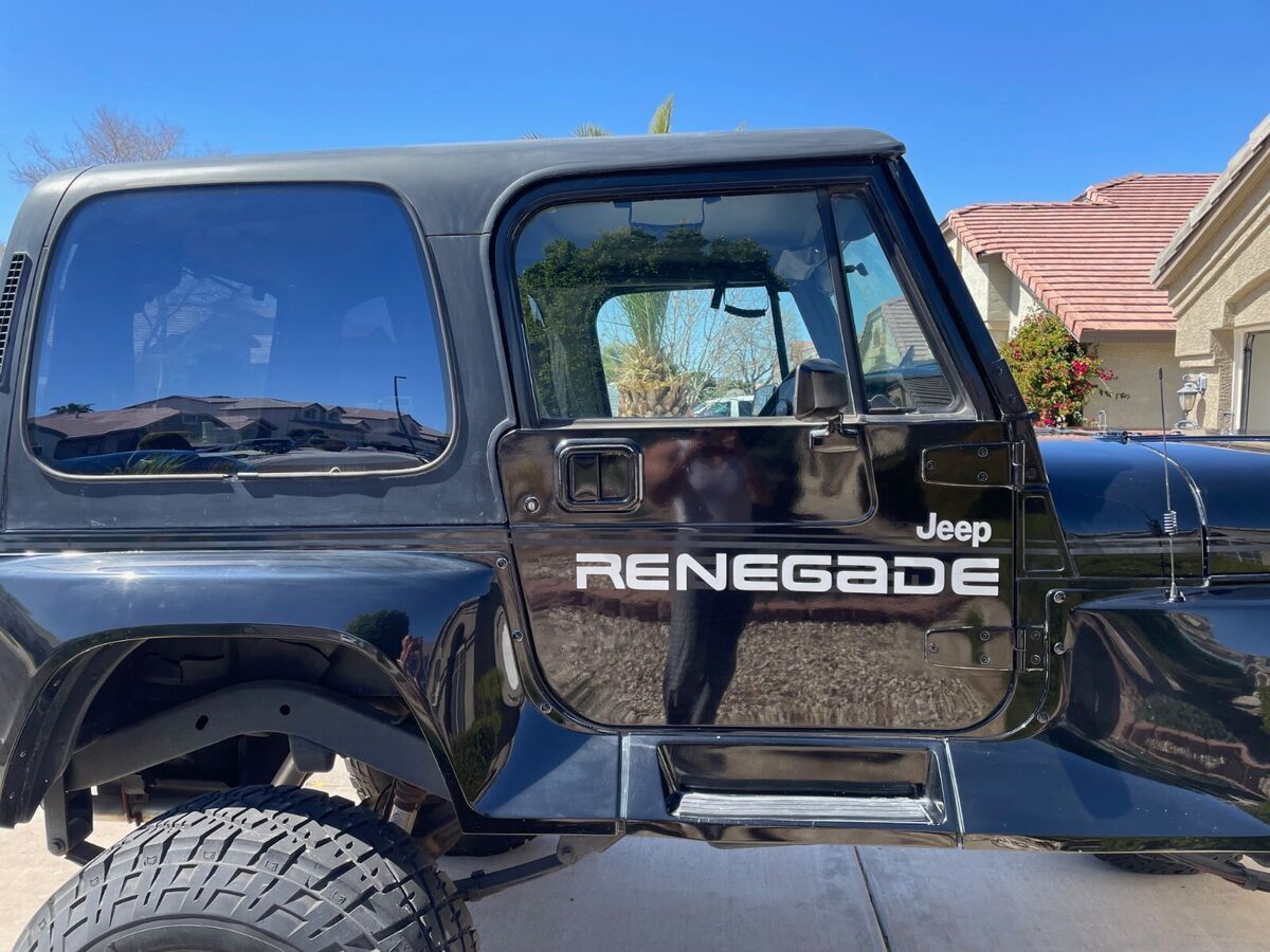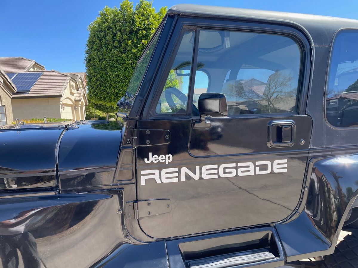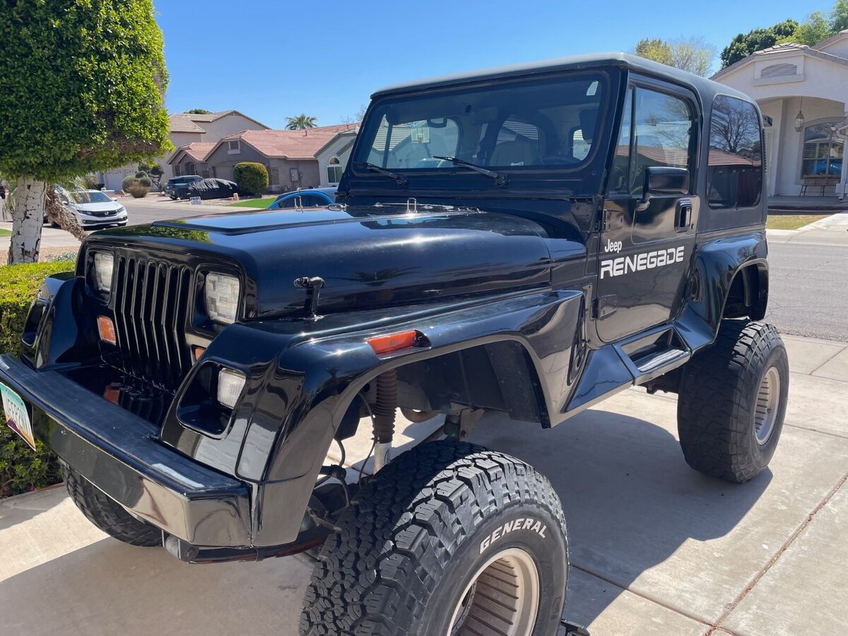 About the Renegade. There are google articles to scan but here is a summary. The Renegade was not very popular when launched, primarily as the extra $4000 was all cosmetic. Did nothing to enhance the drivetrain. Plus, the wider fenders were not appreciated by off roaders. But, as time has passed, the Renegade now has a cult following and I actually prefer the wide fenders especially as I am not an off roader. I guess you could remove them. And, of course, if you ask for any additional pictures and/or details I will quickly provide.It's in really good condition. All gauges work, all lights work, horn, back rear wiper, front wiper, fog lights, brakes good including emergency brake, 4 wheel drive engages and displays on the gauge cluster correctly. Does not smoke.Things to note:It has been lifted, see pics, but properly and professionally lifted before I bought it.New Exhaust, see picsPaint is good, some fading. Like I said I wax it 2 times a year but Arizona sun is brutal. So, some fading but it's a 1992 and the paint is surprisingly pretty good. I made sure to keep the paint as nice as could be expected.Newer Renegade decals that were slightly larger than the original font, which I liked better. The letters are starting to crack as bit. They look decent and if you are going to really get the Jeep in pristine condition then you would buy new decals. If you really were doing a full restore, then repaint before the decals. For me I was very satisfied with the paint the the decals are around 5 years old and were good enough shape for me.Engine runs smooth. No smoke and no valve tap. With the large wheels and lift, you will never spin wheels and the highest speed I ever pushed it was 65mph. Could it do more, I preferred not to try.Hard top, fiberglass of course, in good shape, no cracks, leaks, and glass is good and tinted.All glass is in good shape and the side small windows do open nicely.Yes, it's air conditioned. Of course I never use it but I did recharge it 4 years ago. It should probably be recharged again.I did replace the blower motor on the AC/heat so all 3 speeds workGears shift nicely, no issue.Has an oil pan cover to protect it during off roading, Got it like this and I do not off road so no damage to it.Tires are good with very good tread BUT I believe 3 of them are 6 years old so some say to replace tires over 5 years old. So, perhaps you should. Spare is definitely average for emergency use only.What's needing attentionThe passenger door you have to lock from the inside. You can unlock from the outside but can only lock from the inside. I could have pulled the inner door skin apart to figure it out but it never bothered me as I seldom use it with any passenger.A few places where the paint has clipped off. On the drivers front fender there is a chip. But the primer is still there so some touch up black paint would cover it up if you wanted to do that.The radio speakers are actually not good at all. They work but the fidelity was never good. I was considering a sound bar but when you ride a Jeep music really is not the priorityThe radio is also average. Not great, not expensive, after market and came with the Jeep when I bought itFront driver's seat, the seat cushion has some tearing which could be stitchedI think it's worth more than $5500 but why be greedy. If it hits or goes beyond $7500 I have a soft top I will throw in.I did, recently sell a VW bug and the buyer gave me good feedback which I think you can view in the feedback section. I am selling cars and will be listing other stuff as it's overdue that I downsize, bummer getting old (older)