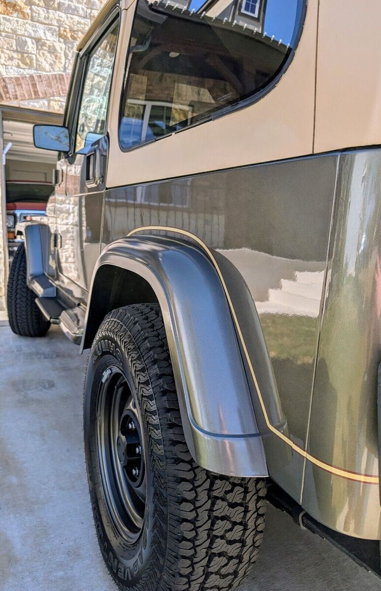 1991 Jeep Wrangler YJ Sahara. New paint in Khaki Metallic, AC system, Tires, brakes, exhaust manifold- pipes- muffler, floor heat shielding, Apple / Android stereo, 6*9 speakers, Bluetooth amplifier, exterior door and window seals, battery, and much more. Drives Amazing!